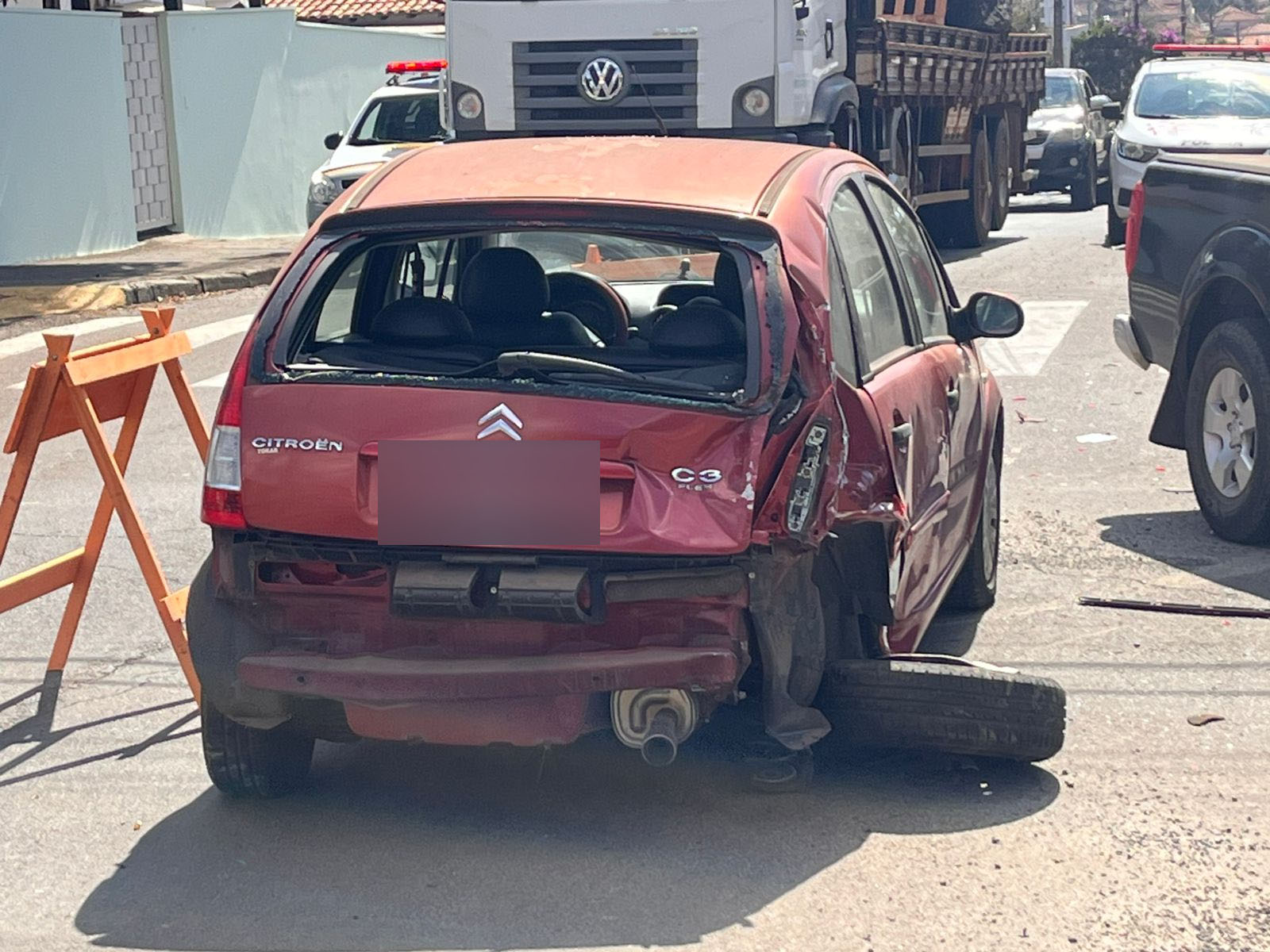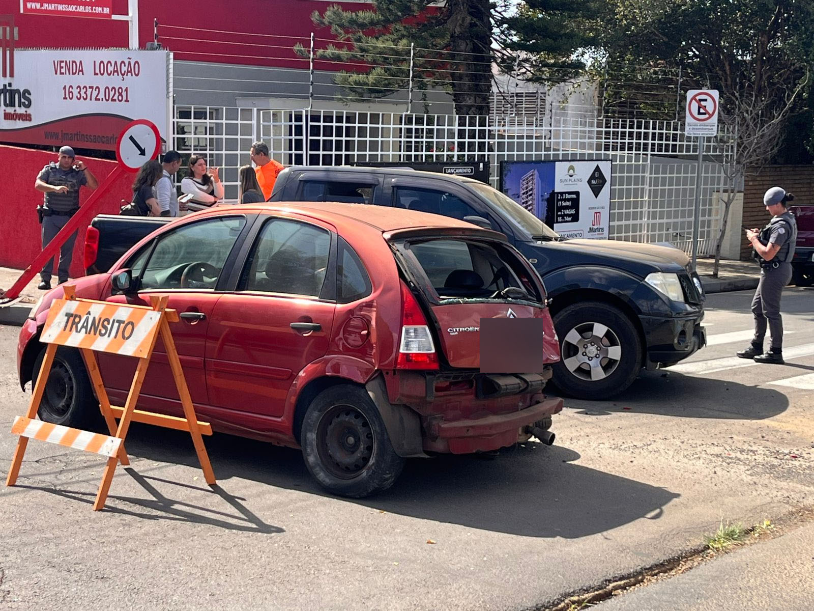 Uma colisão entre uma caminhonete e um Citroen C3 foi registrada na altura do cruzamento da Dom Pedro II com a Orlando Damiano no Centro de São Carlos.