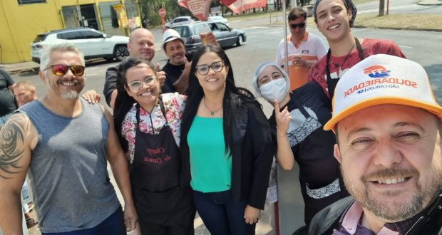 Na segunda-feira cedinho, Andreia saiu mais uma vez para luta, indo até as portas de fábricas para realizar a panfletagem e mais uma vez propagar suas ideias e propostas.