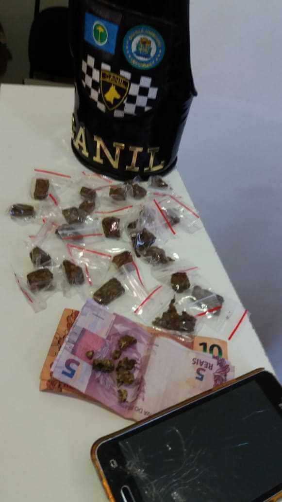 Segundo informações, o Canil estava em patrulhamento quando avistou quatro indivíduos sentados em uma banqueta, local  conhecido como ponto de venda de entorpecentes. Em busca  pessoal  aos indivíduos foi localizado no bolço de um dos averiguados uma porção de entorpecentes e R$30,00. Com ajuda da cadela  Zayra,  da raça Pastor Holandês,  foram  localizados em uma árvore,  próxima ao local mais  23 porções de entorpecentes semelhantes a encontrada no bolço do sujeito. E com o menor de idade um celular Samsung com queixa de furto. Diante dos fatos,  ambos foram conduzidos à  Dise,  o menor liberado e o maior, o qual não teve o nome e nem a idade revelados, à disposição da justiça.