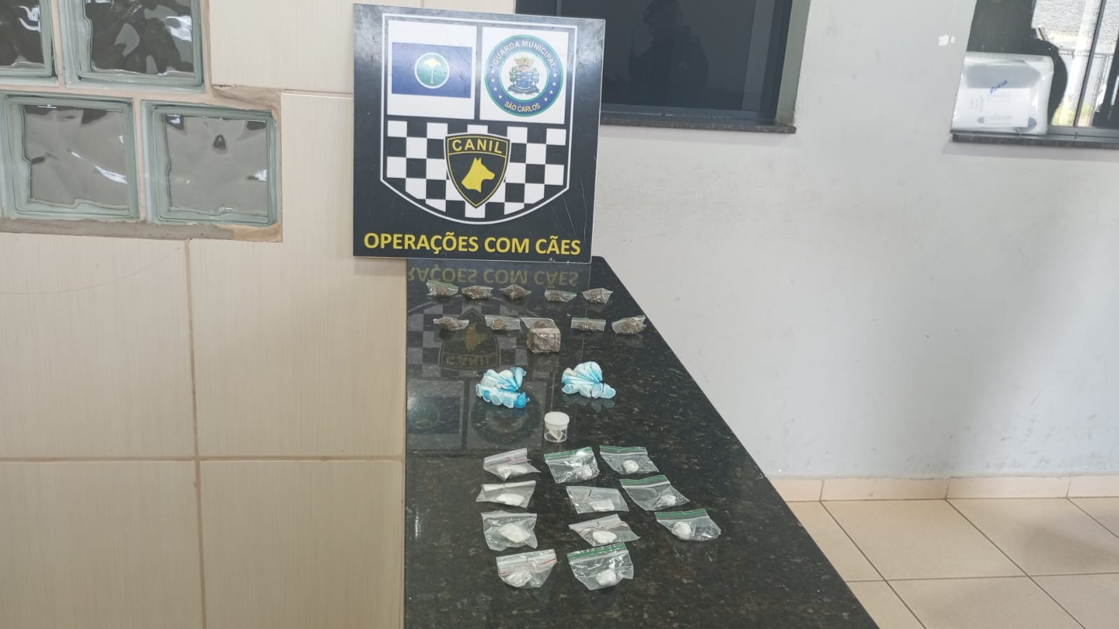 O Canil da Guarda Municipal apreendeu droga nesta quinta-feira, 18 de abril de 2024, na Rua José Quatrocchi, bairro Arnon de Melo, São Carlos-SP.