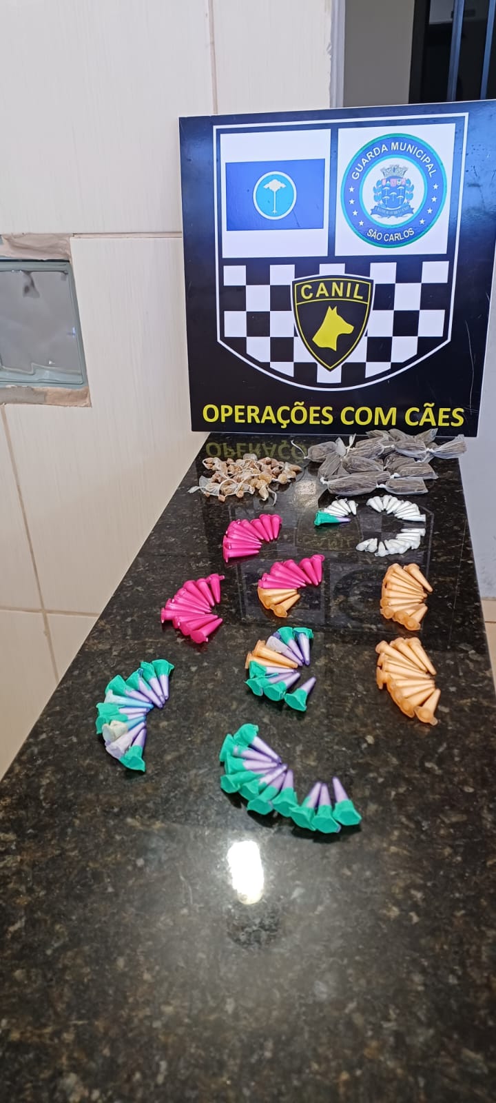 Nesta manhã de sexta-feira, 19 de maio de 2023, o Canil da Guarda Municipal apreendeu drogas na Rua Aristeu Soares de Camargo, bairro Vila Jacobucci, São Carlos-SP.