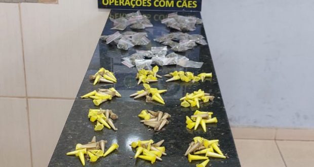 De acordo com informações, a equipe do Canil estava em patrulhamento, momento que avistou dois indivíduos em um local conhecido como ponto de tráfico de drogas. Estes fugiram. A GM encontrou 125 pinos de cocaína, 50 invólucros de maconha, 67 pedras de crack e 05 porções de haxixe. As drogas foram apreendidas na Central de Polícia Judiciária.