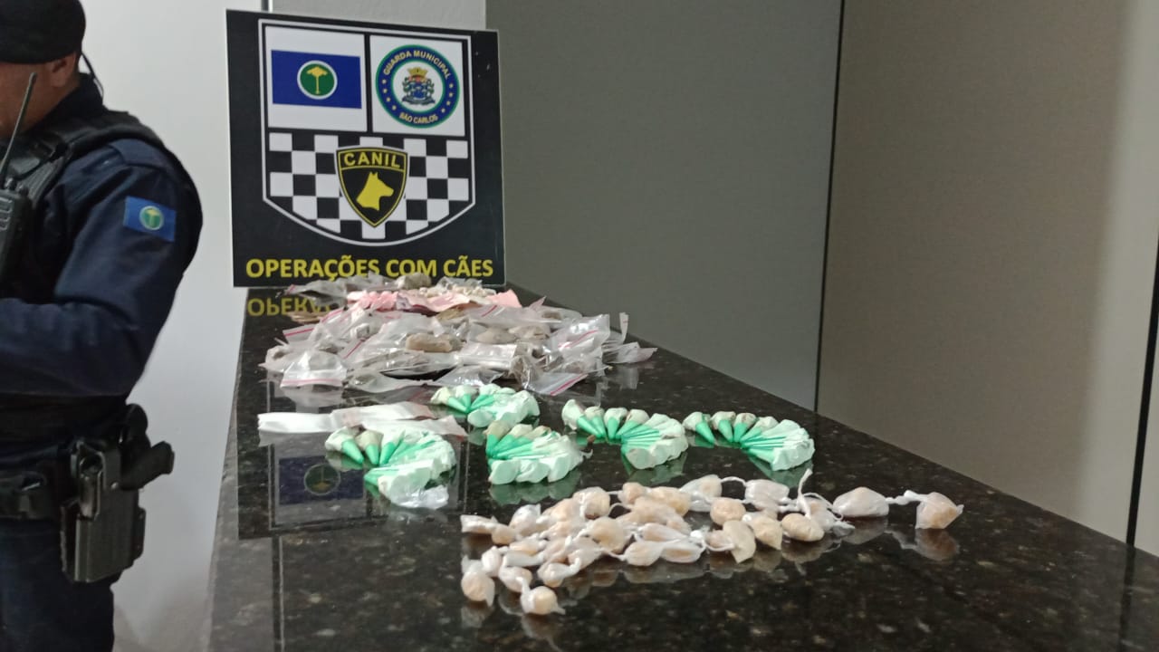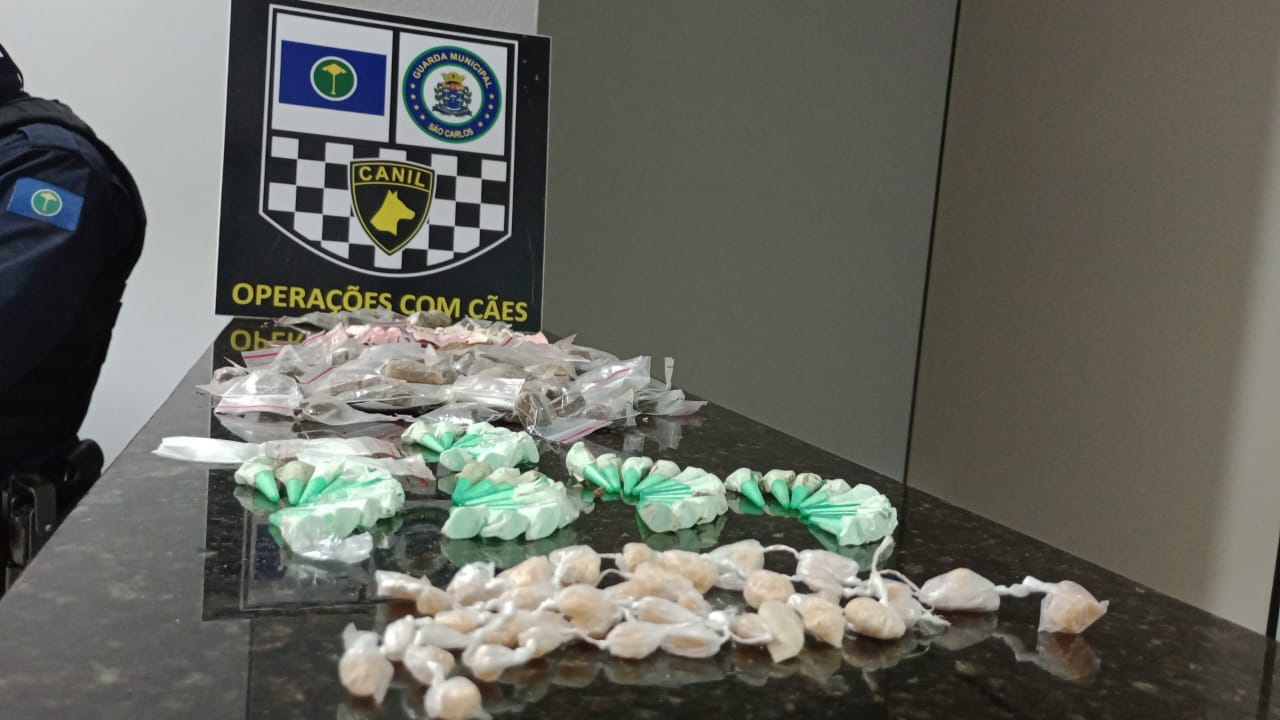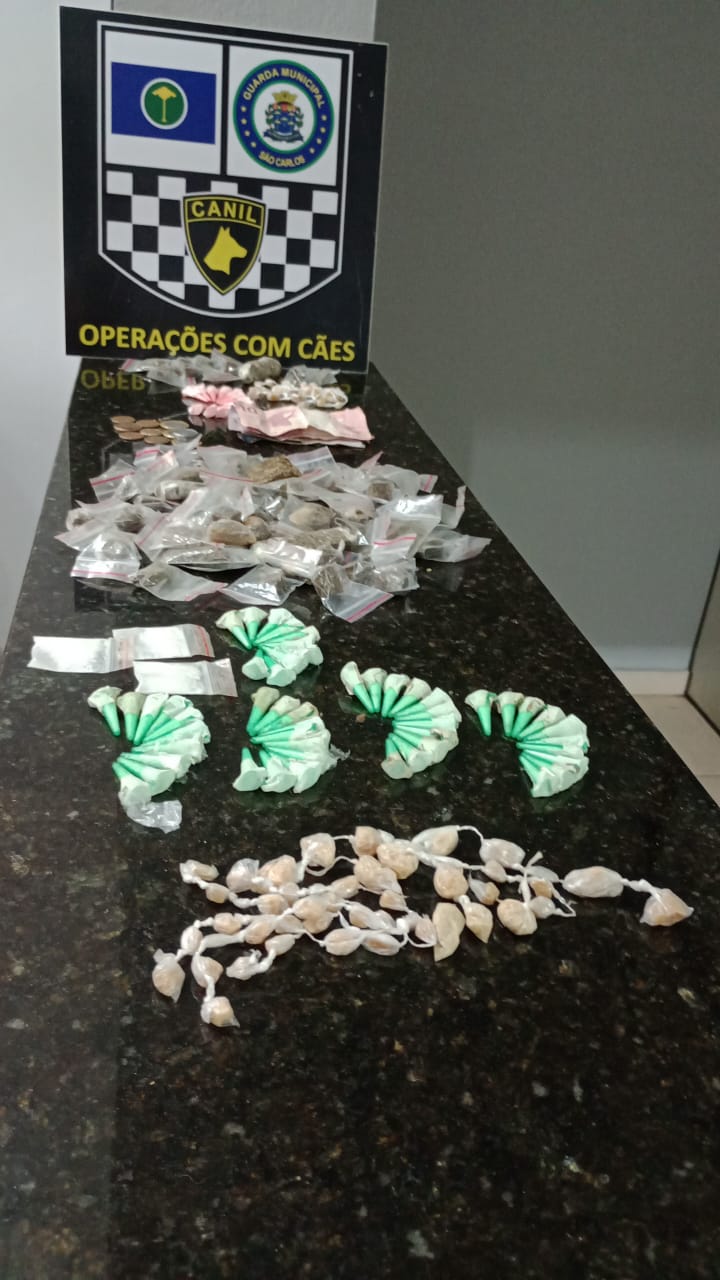 A Guarda Municipal apreendeu drogas nesta manhã de quinta-feira, 26 de outubro de 2023, na Rua José Quatrochi, bairro Santa Angelina, São Carlos-SP.