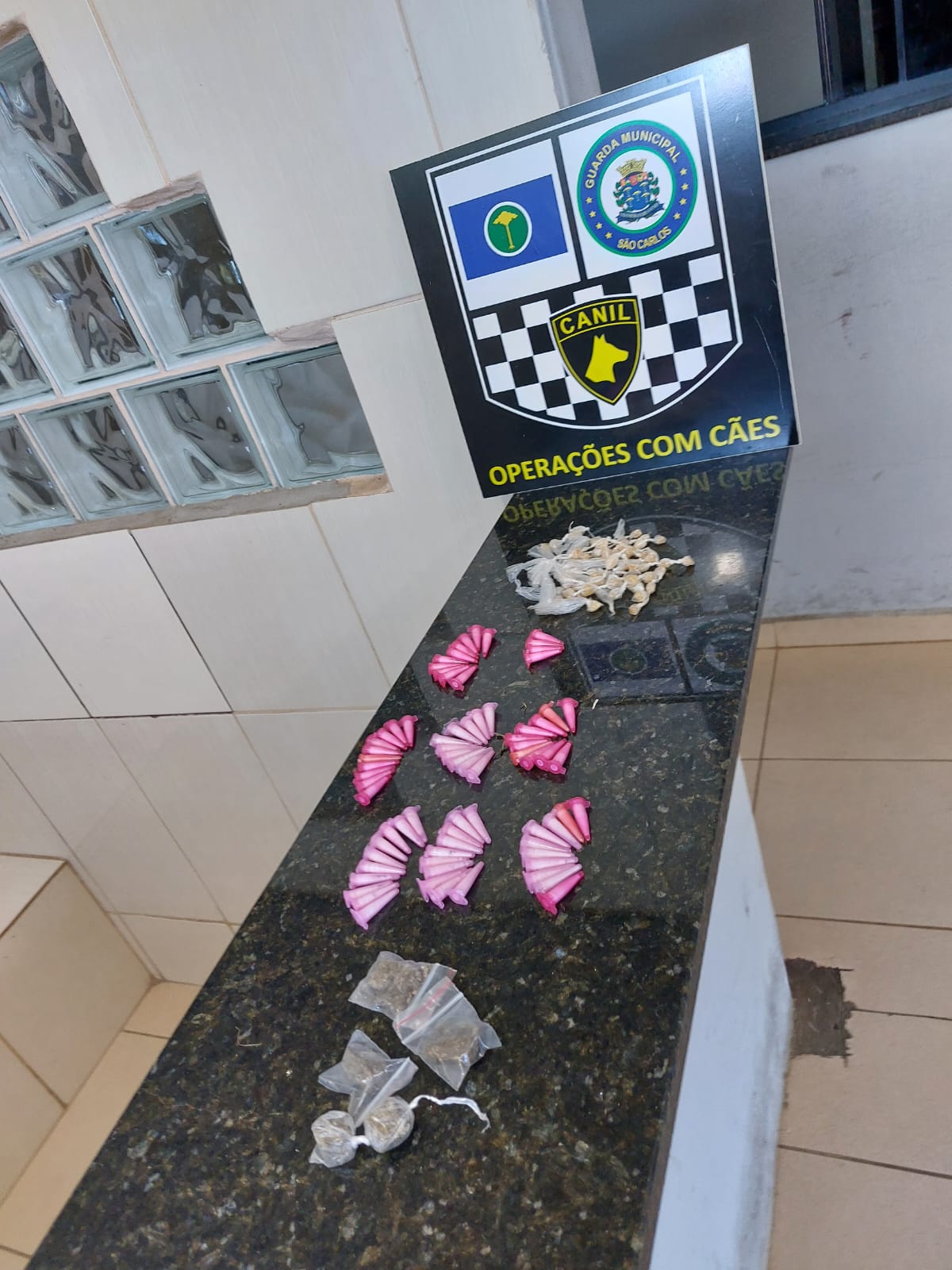 Drogas foram apreendidas pela GM nesta segunda-feira, 3 de abril de 2023, na Rua Rio Paranapanema, bairro Jóquei Clube, São Carlos-SP.