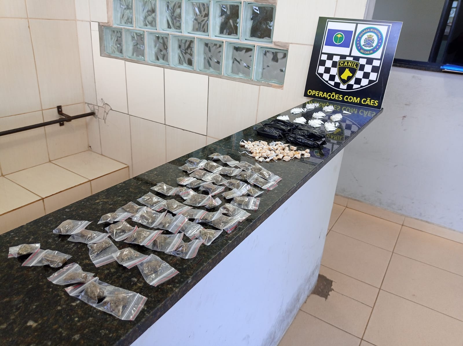 Segundo informações, a equipe do Canil estava em patrulhamento preventivo, pela USF Santa Angelina, quando avistou alguns indivíduos. No local foi localizada uma sacola contendo, 91 pinos de cocaína, 50 porções de maconha, 7 tabletes de maconha e 70 pedras de crack. As drogas foram encaminhadas para a Central de Polícia Judiciária, onde foram apreendidas.