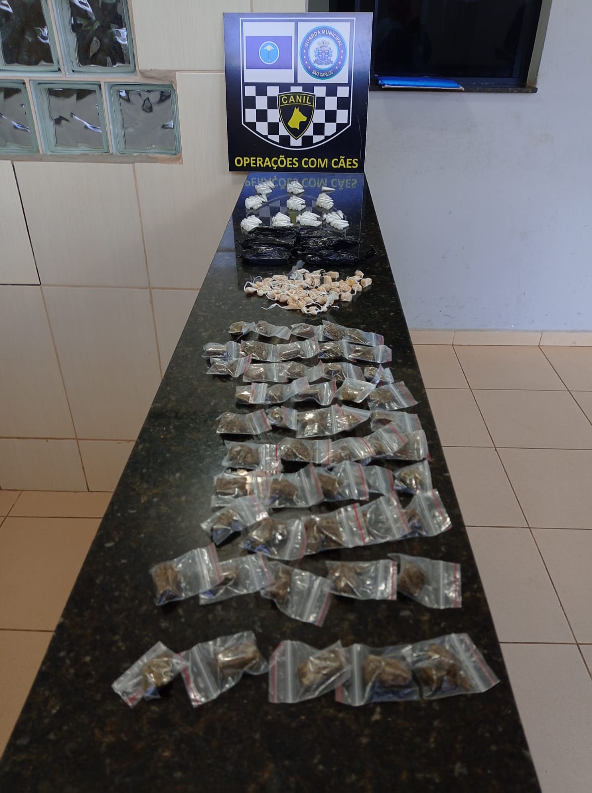 O Canil da Guarda Municipal apreendeu drogas nesta manhã de quarta-feira, 8 de março de 2023, na Av. João Dagnone, bairro Santa Angelina, São Carlos-SP.