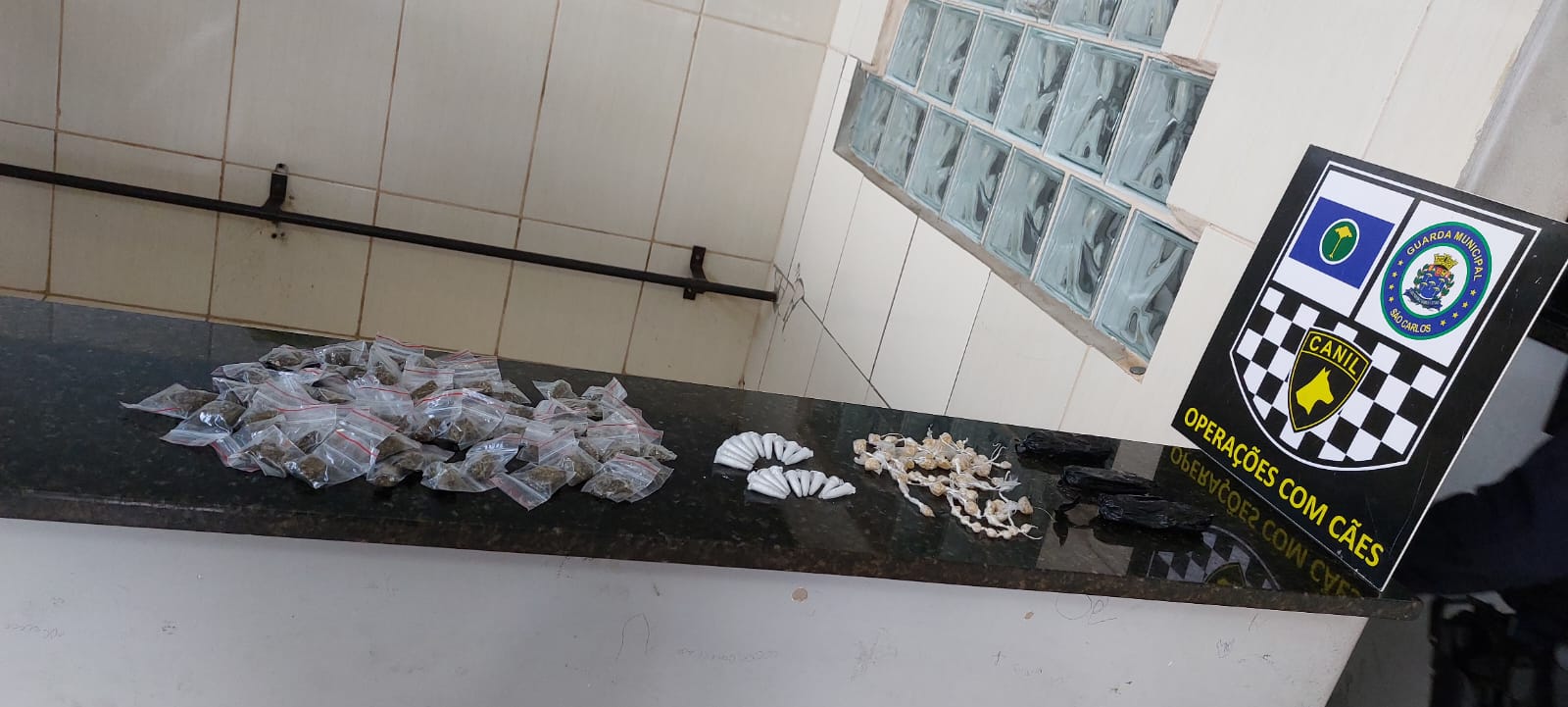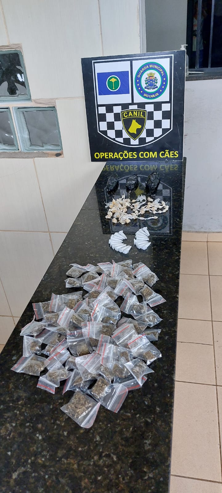 O Canil da Guarda Municipal apreendeu drogas nesta manhã de terça-feira, 21 de novembro de 2023, na Av. João Dagnone , bairro Santa Angelina, São Carlos-SP.