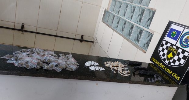 De acordo com informações, a GM estava em patrulhamento, quando avistou um indivíduo em atitude suspeita. Ele foi abordado, mas nada de interesse policial, foi encontrado. Tendo em vista que o local ser conhecido como ponto de tráfico de entorpecentes, empregou-se o trabalho de faro da K9 ÍNDIA, a qual logrou êxito em localizar em meio as folhagens uma sacola contendo 75 pedras de crack, 62 invólucros de maconha, 19 pinos de cocaína. A ocorrência foi encaminhada para a Central de Polícia Judiciária, onde as drogas foram apreendidas.