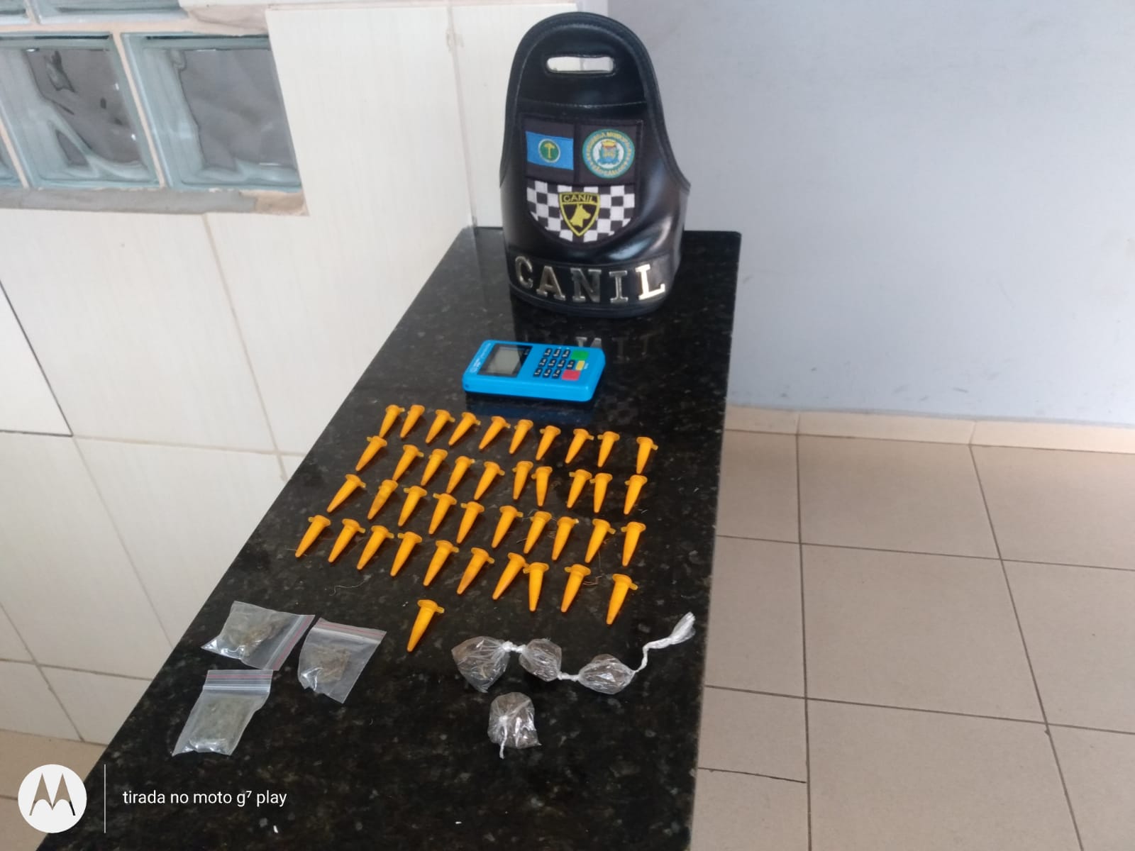 Segundo informações, o Canil da GM abordou um sujeito em um local conhecido por tráfico de drogas. Com o mesmo nada de ilícito foi localizado. A K9 ÍNDIA localizou  7 invólucros com de maconha, 41 ependorfs de cocaína e uma maquininha de cartão. A ocorrência foi encaminhada à Central de Polícia Judiciária e os objetos apreendidos.