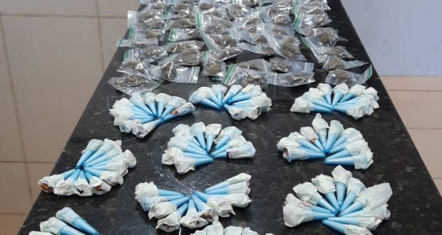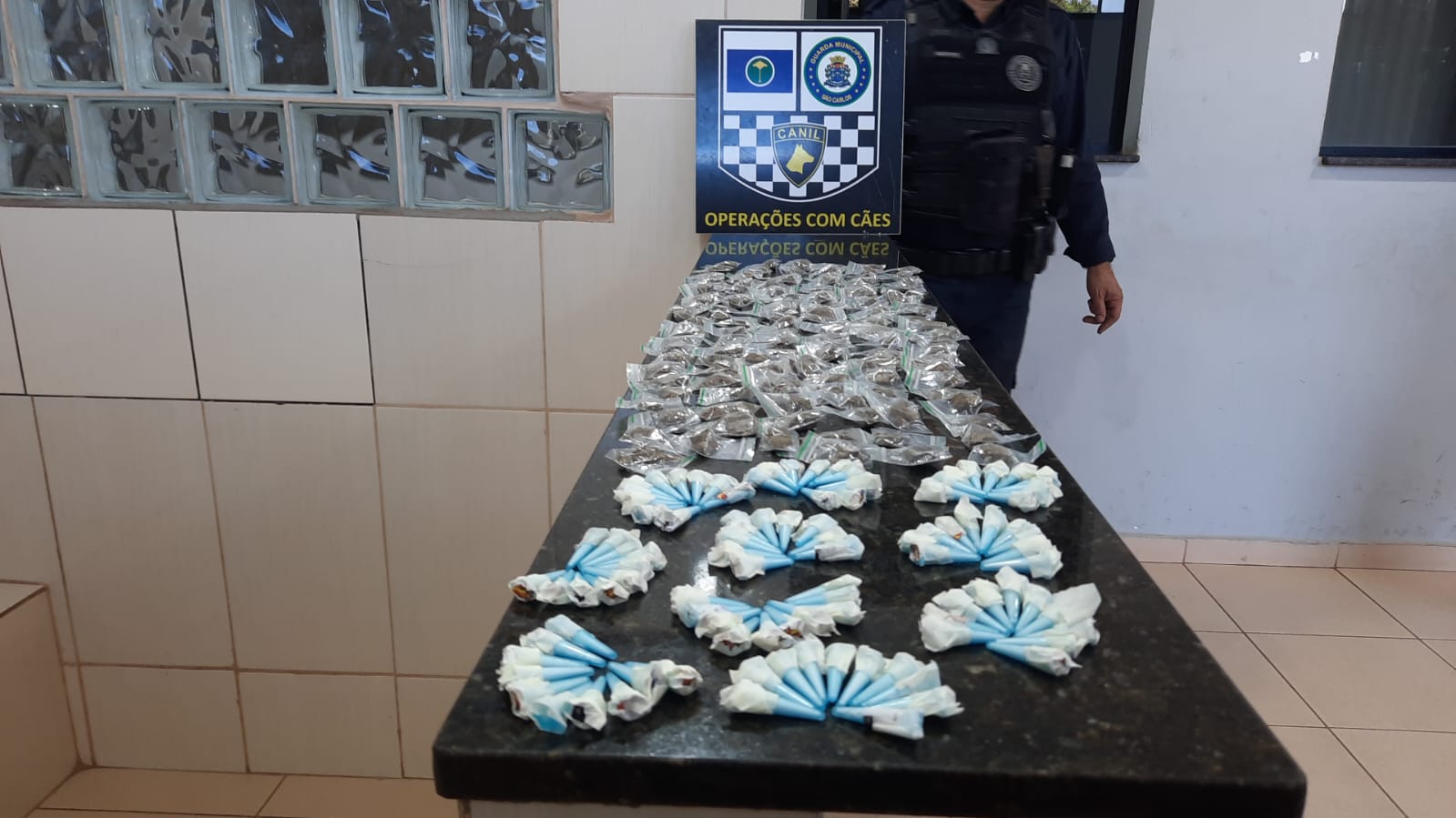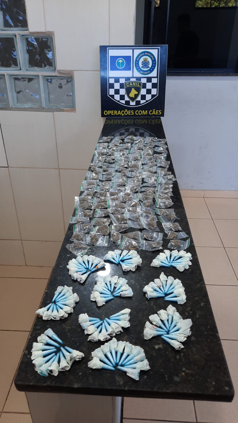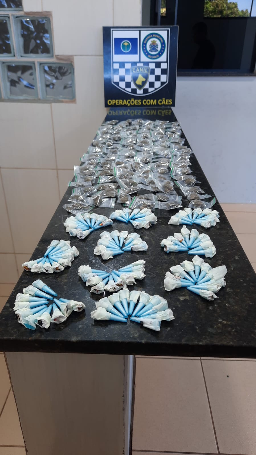 Segundo informações, o Canil da GM estava em patrulhamento, quando abordou dois menores de idade. Em revista pessoal na da de ilícito foi encontrado com os averiguados. Nas proximidades o cão farejador encontrou escondidos em um terreno baldio, 100 pinos de cocaína , 130 porções de maconha, 08 comprimidos de ecstasy, 13 porções de haxixe e uma máquina de cartão. O material foi encaminhado para a Central de Polícia Judiciária, onde foi apreendido.