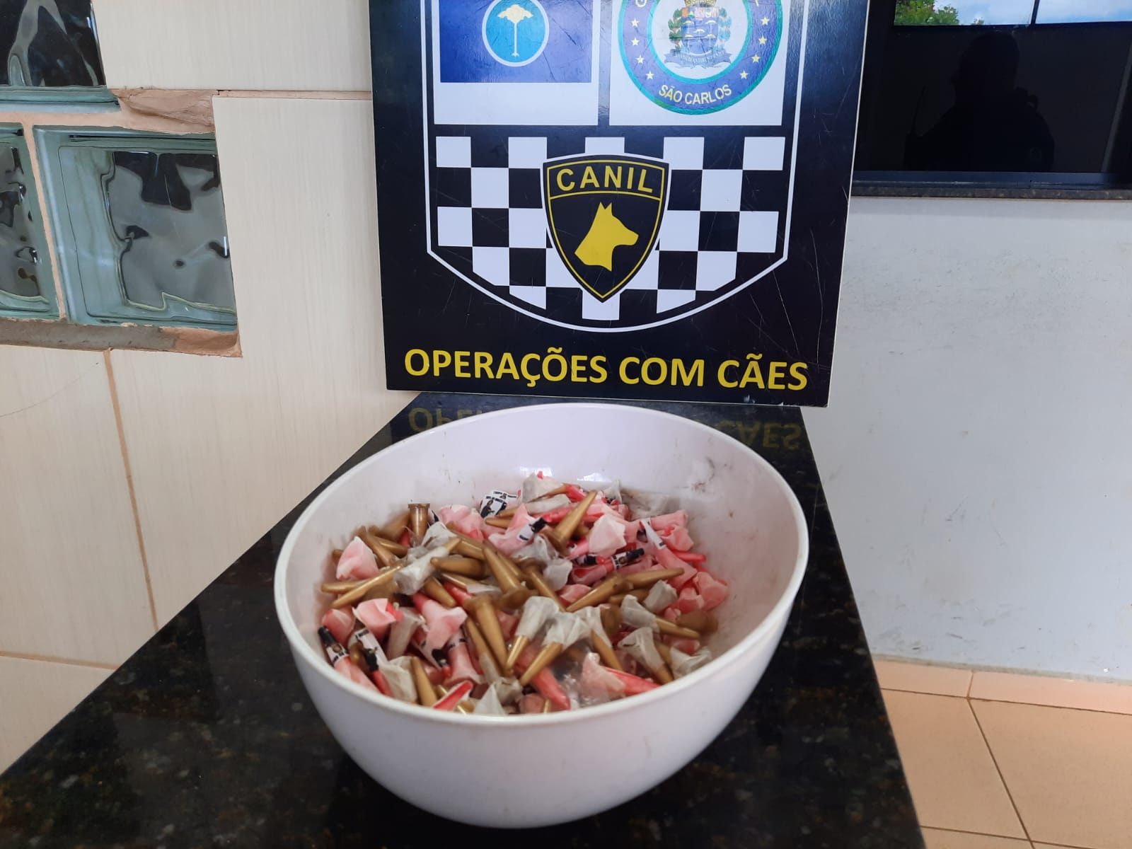 O Canil da Guarda Municipal apreendeu drogas nesta manhã de quinta-feira, 4 de janeiro de 2024, na Rua José Quatrochi, bairro São Carlos V, São Carlos-SP.