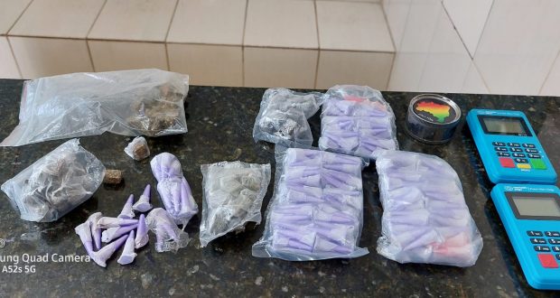 Segundo informações, o Canil estava em patrulhamento, momento que avistou um sujeito correndo e pulando o muro de um terreno baldio. O suspeito não foi detido, mas fora utilizado o trabalho de faro com a k9 Índia, que logrou êxito em localizar uma sacola contendo, 212 pinos de cocaína, 85 invólucros de maconha e duas maquininhas de cartão Power Point mini. Todo o material foi encaminhado para a Central de Polícia Judiciária e apreendido.