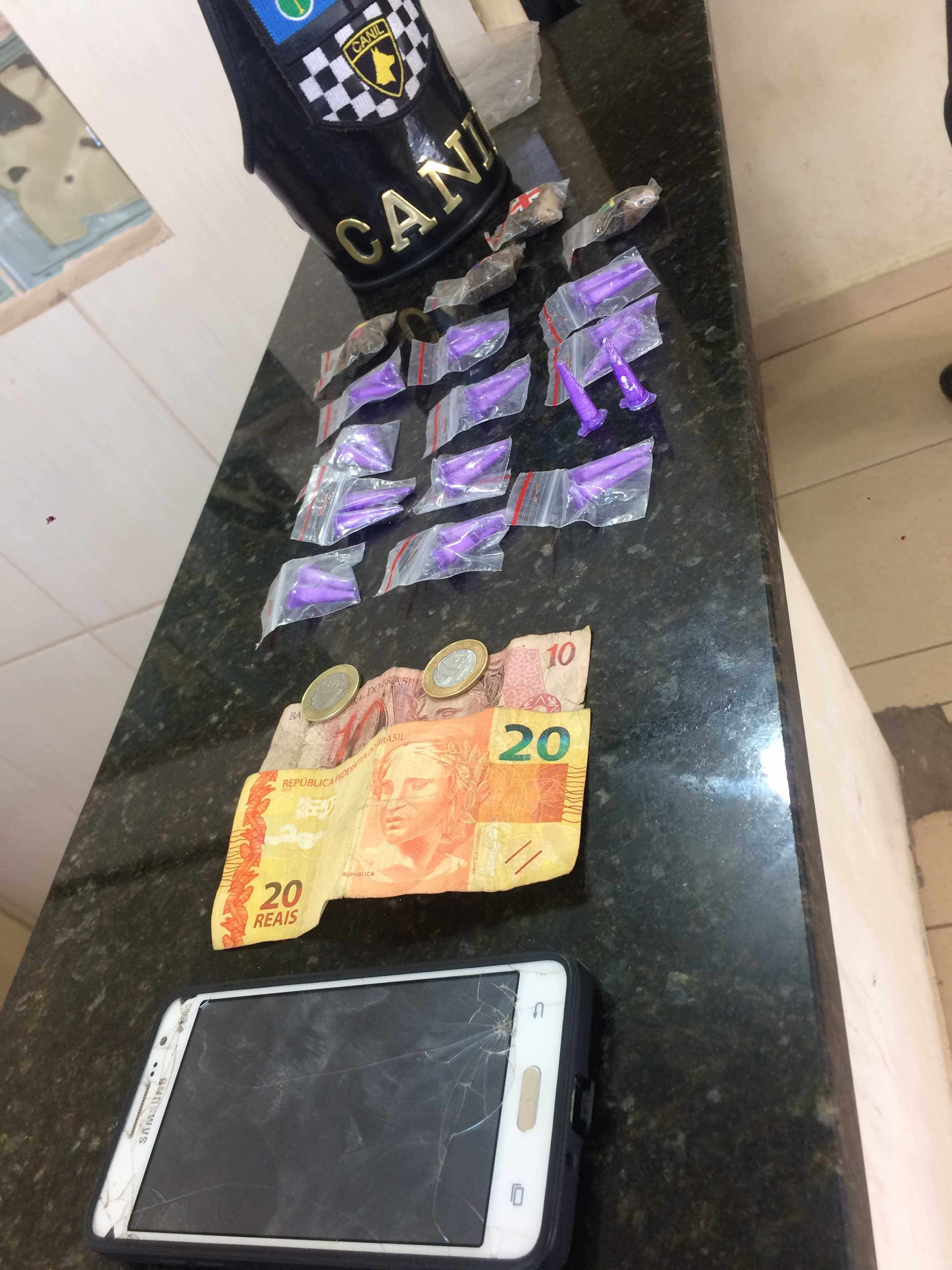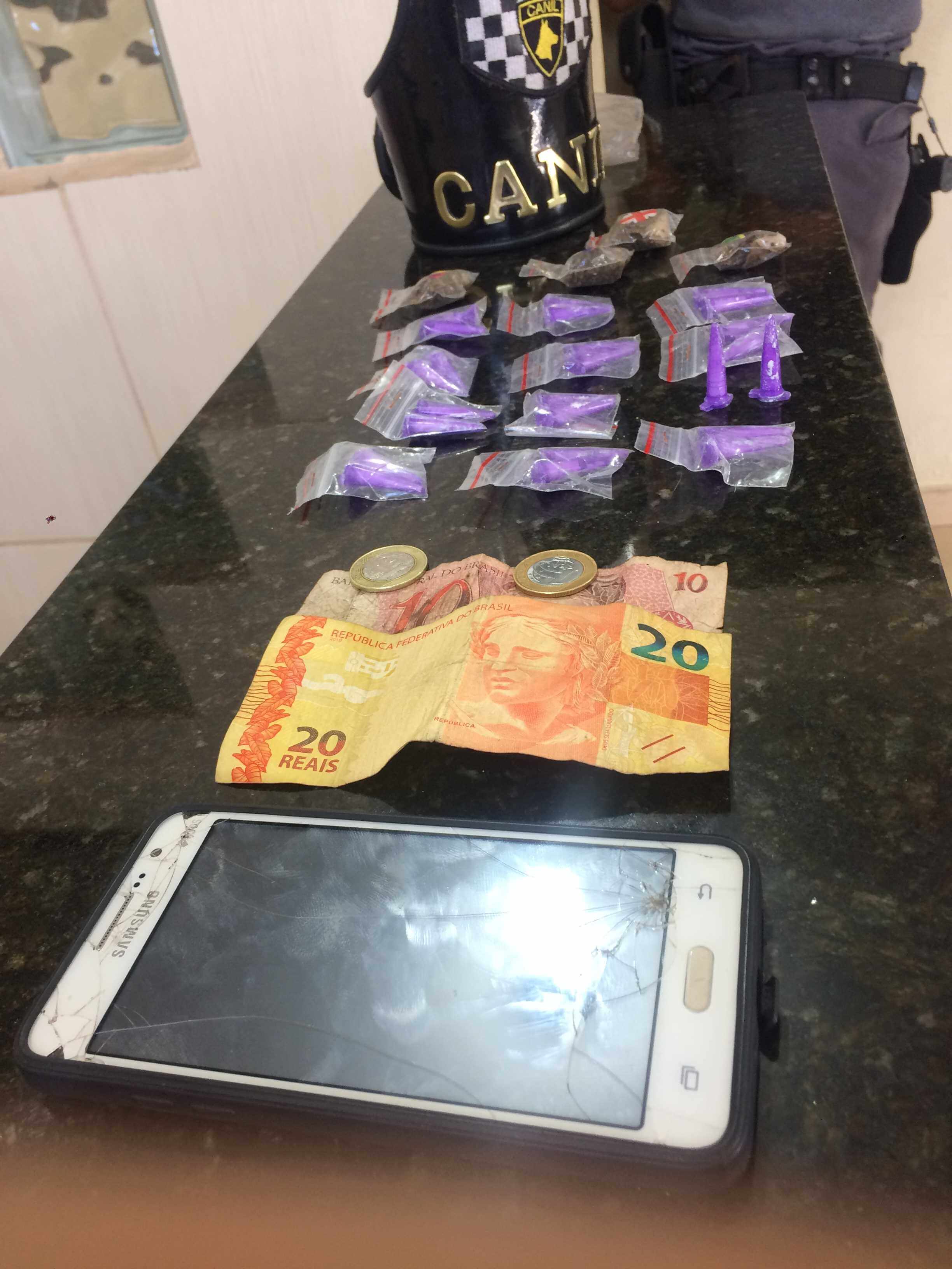 Segundo informações, o delinquente empreendeu fuga sendo detido na rua Francisco Marigo. Os combatentes refizeram o trajeto da fuga localizando aproximadamente 24 pinos com cocaína, 4 invólucro de maconha R$ 32,00.