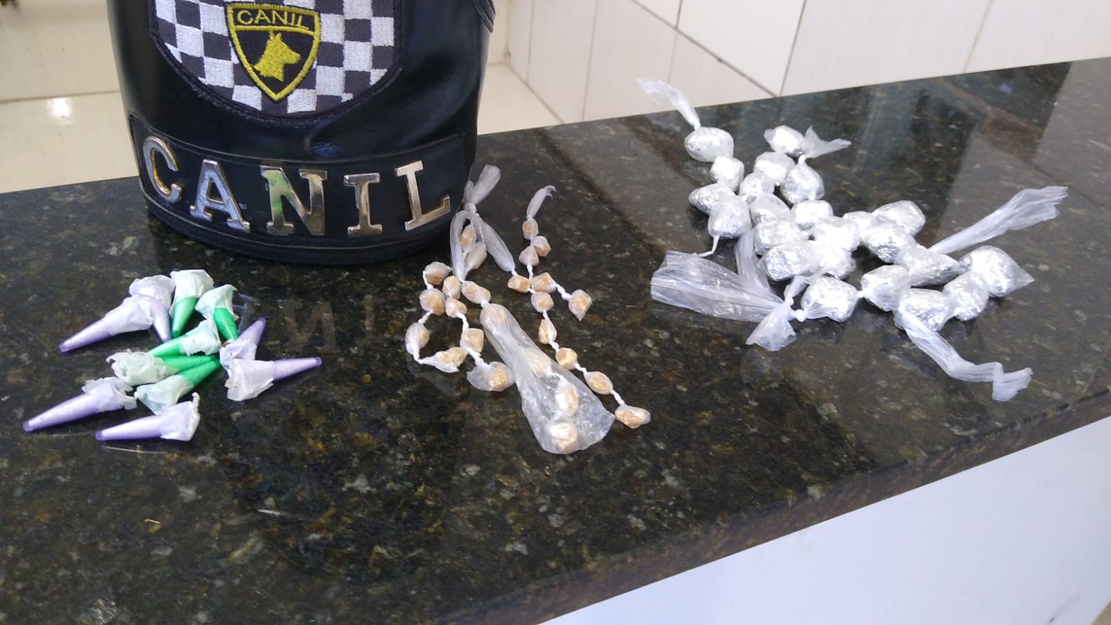 Segundo informações, a GM abordou três indivíduos, mas com eles nada de ilícito foi encontrado. Em um terreno baldio, o cão farejador encontrou 23 porções de maconha , 26 crack e 11 de cocaína. Os GMs encaminharam a ocorrência para a Central de Polícia Judiciária e o delegado. Dr. Maurício Antônio Dotta e Silva apreendeu as drogas.