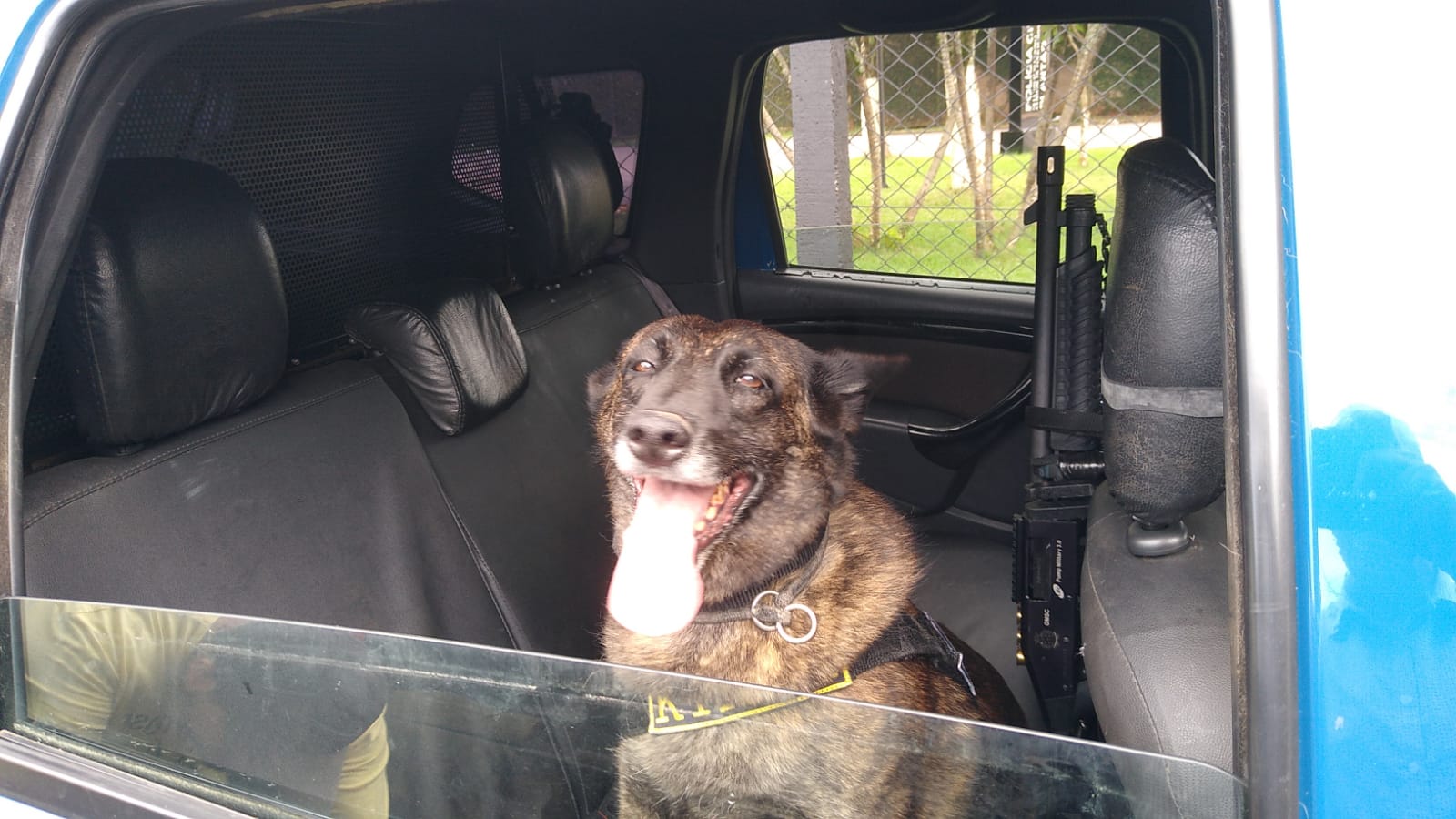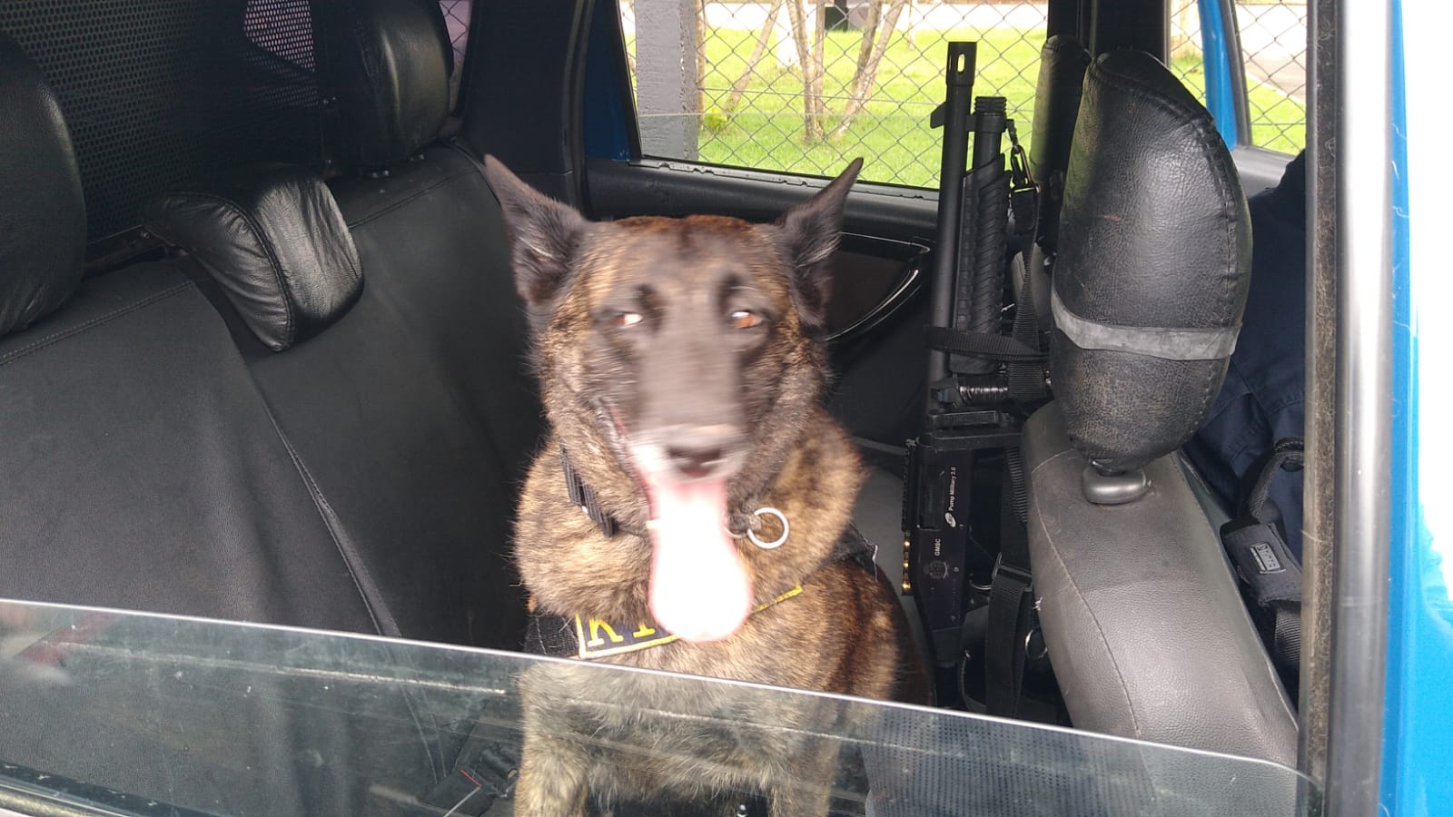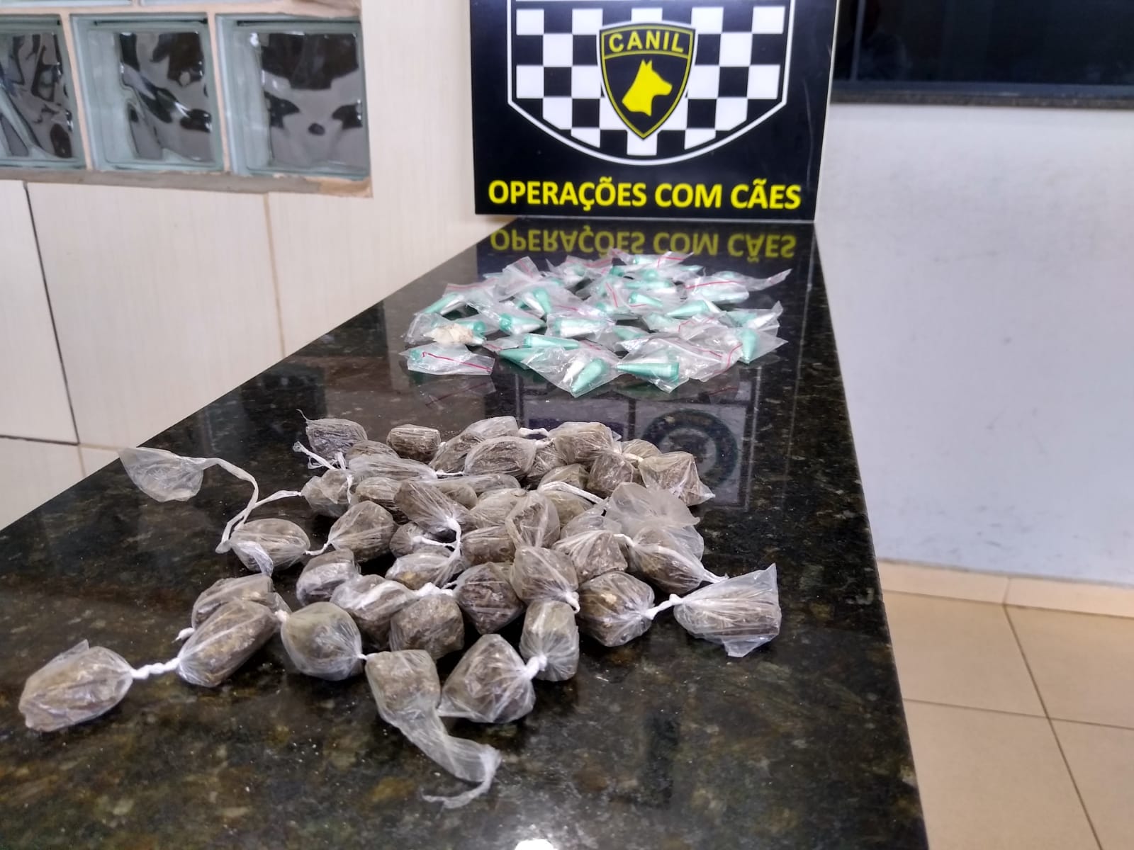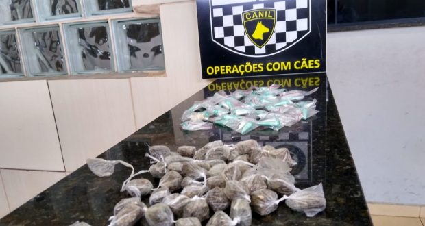 Segundo informações, a equipe do Canil estava fazendo patrulhamento preventivo pelo referido local, quando abordou um indivíduo em atitude suspeita. Com ele nada de interesse policial foi localizado. O cão farejador Kiara localizou uma sacola com 64 pinos de cocaína e 47 invólucros de maconha. As drogas foram encaminhadas para a Central de Polícia Judiciária, onde foram apreendidas.