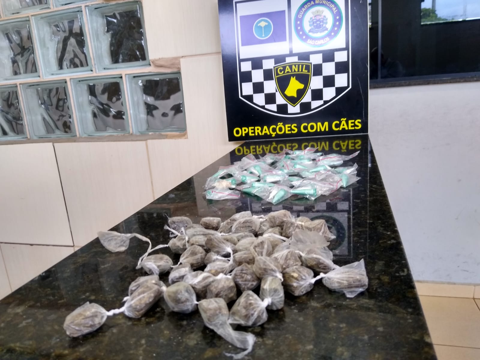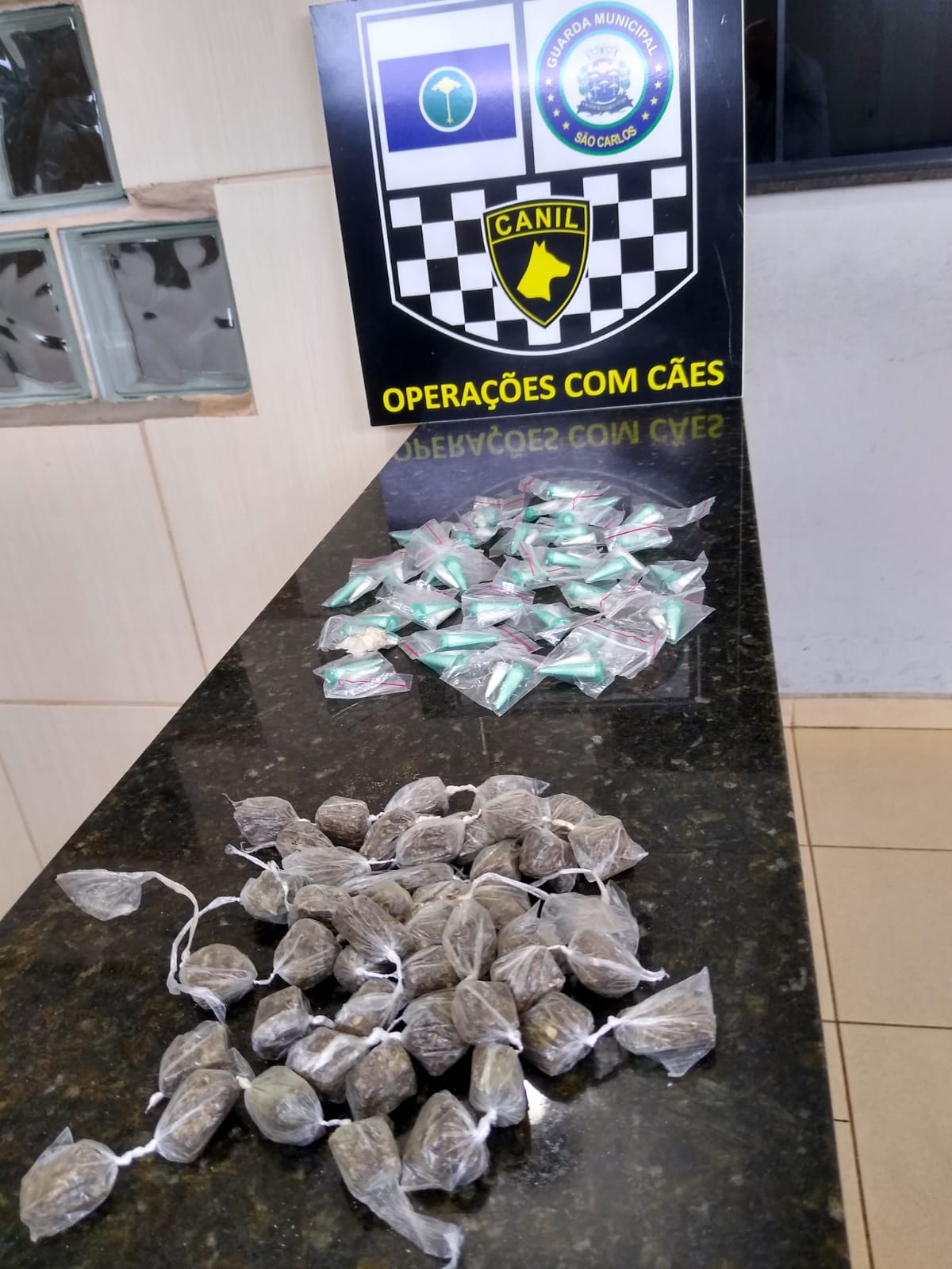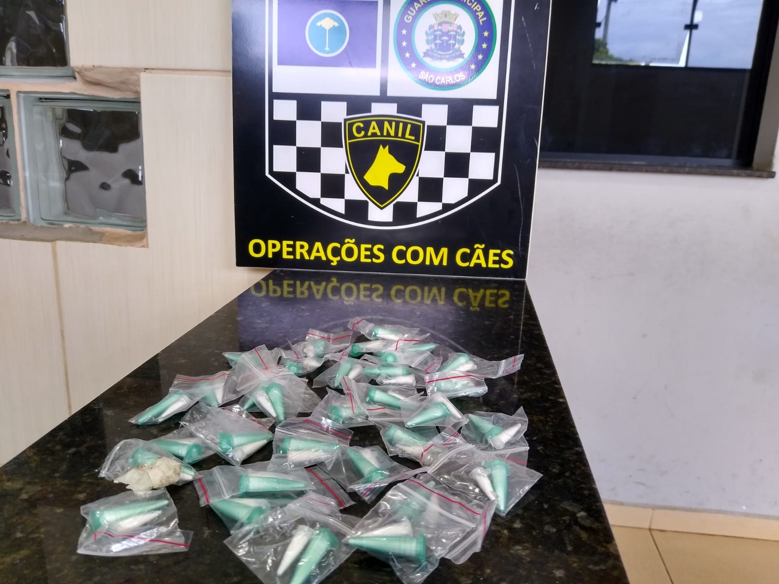 O Canil da Guarda Municipal apreendeu drogas nesta manhã de terça-feira, 14 de março de 2023, na Rua Paraguai, bairro Jardim Real, São Carlos-SP.