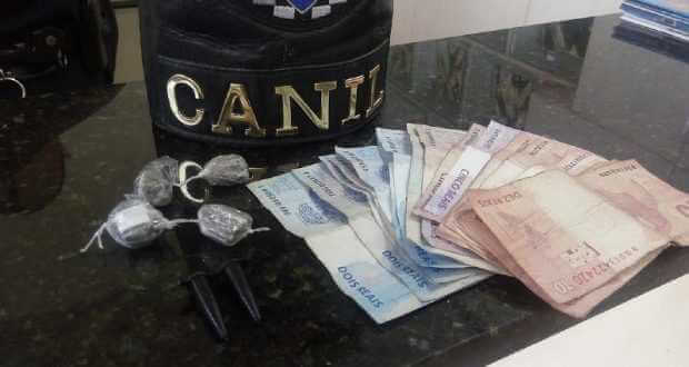Um adolescente de 14 anos foi detido pela Guarda Municipal no início da tarde deste sábado, 08-07-2017, com dinheiro e drogas na rua Coronel Leopoldo Prado, bairro Vila Prado, São Carlos-SP.