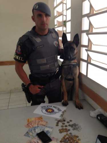 Os policiais suspeitaram do jovem Fabricio, de 23 anos, que teria assustado ao ver a viatura. Ele acabou sendo  abordado em seguida. De acordo com informações, com ele a polícia encontrou três porções de maconha e R$ 31,00 em moedas. A equipe do canil estava em treinamento com o cachorro Ares, que em sua primeira ação localizou sob uma moita  mais sete porções de maconha e R$ 179,00 em notas.
