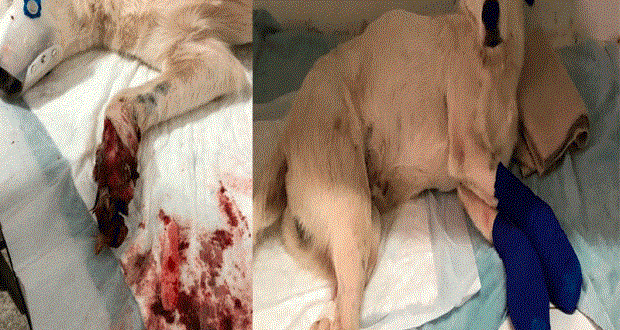 No final da tarde, uma testemunha viu um cão branco chorando na mata, perto da linha do trem, e avisou as mulheres. Elas foram ao local e encontraram o cachorro, coberto com um pouco de grama, e com os coxins (“almofadas” das patas) cortados.