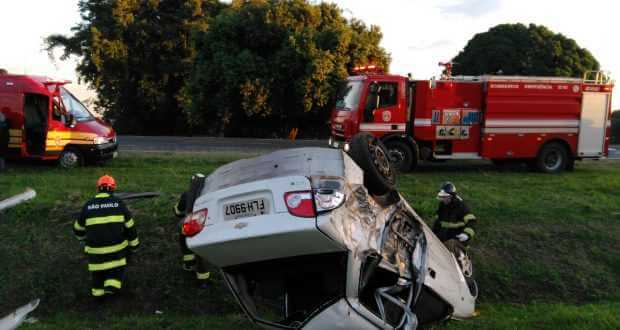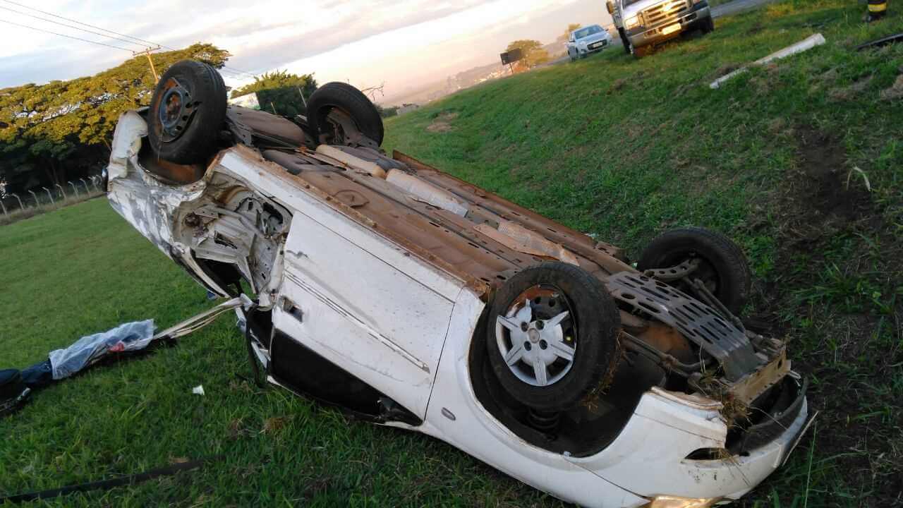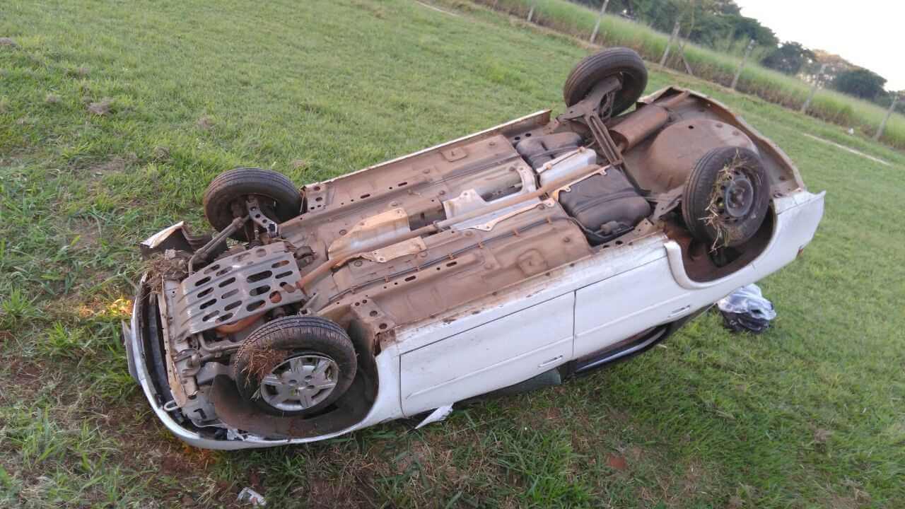 Um carro capotou na manhã desta segunda-feira, 12-06-2017, após uma colisão na rodovia SP-333, Taquaritinga-SP.