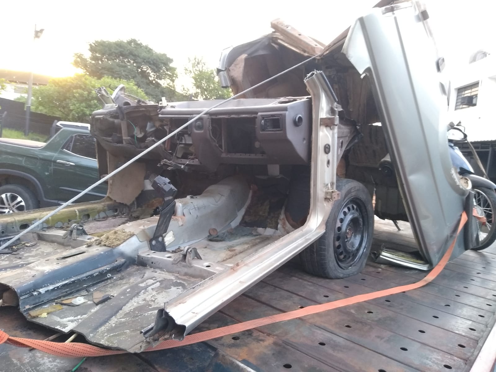 Segundo boletim de ocorrência, o Centro de Operações da Polícia Militar foi informado que um indivíduo estaria usando uma lixadeira para cortar a lataria do carro. No local os se depararam com o sujeito cortando o veículo e outros dois assistindo a cena.  A Parati ano 1993  estava com queixa de furto registrado  em boletim de ocorrência no dia 12-04, deste presente ano. Populares contaram que cerca de 15 atrás o carro tinha sido abandoando após ter colidido em um poste. Que depois de ser abandonado,  moradores da região passaram a depenar o mesmo. Os indivíduos que estavam no local foram conduzidos para a Central de Polícia Judiciária, qualificados e liberados.  A carcaça do veículo foi recolhida ao Pátio .