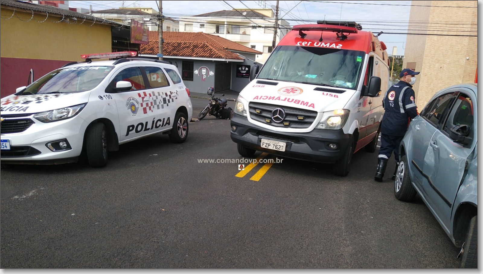 Um motociclista de 28 anos ficou ferido ao ter sua moto atingida por um carro nesta manhã de terça-feira, 16 de agosto de 2022, no cruzamento da Rua Antônio Blanco, com a Rua Antônio Rodrigues Cajado, bairro Tijuco Preto, São Carlos-SP.