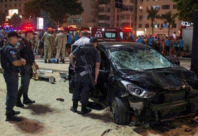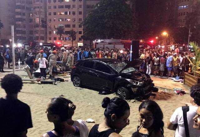 Um veículo invadiu e atropelou ao menos 15 pessoas, dentre elas duas crianças, na avenida Atlântica, no calçadão da praia de Copacabana, na zona sul do Rio de Janeiro. Um bebê de 8 meses não resistiu aos ferimentos e morreu . O acidente ocorreu na altura da Rua Figueiredo de Magalhães, por volta das 20h15 desta quinta-feira (18-01-2018). Pelo menos duas pessoas estão em estado grave.