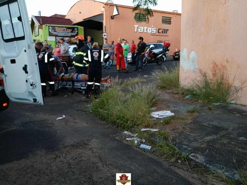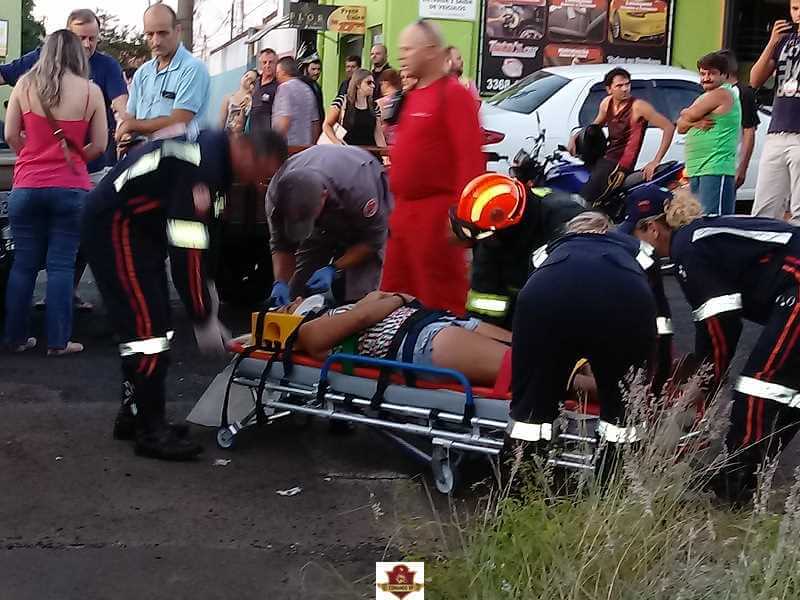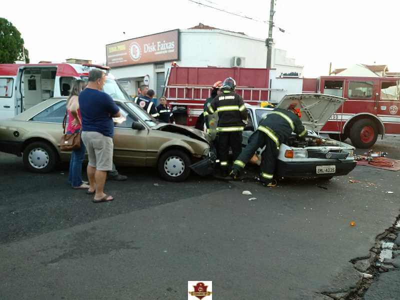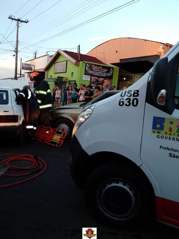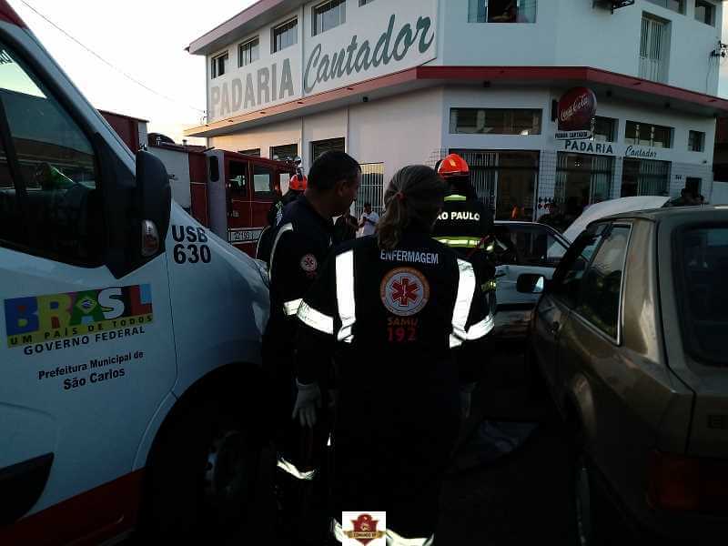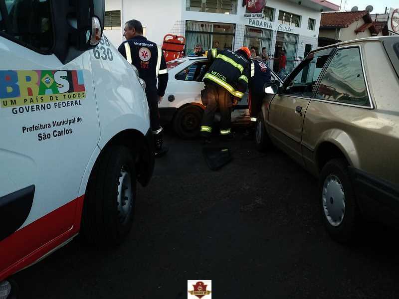 Uma colisão envolvendo dois carros no inicio da noite desta segunda-feira, 5 de março de 2018, no cruzamento da rua Machado de Assis, com a rua Rocha Pombo, bairro Vila Marcelino, São Carlos-SP, deixou uma mulher de 31 anos com suspeita de fratura em uma das costelas.