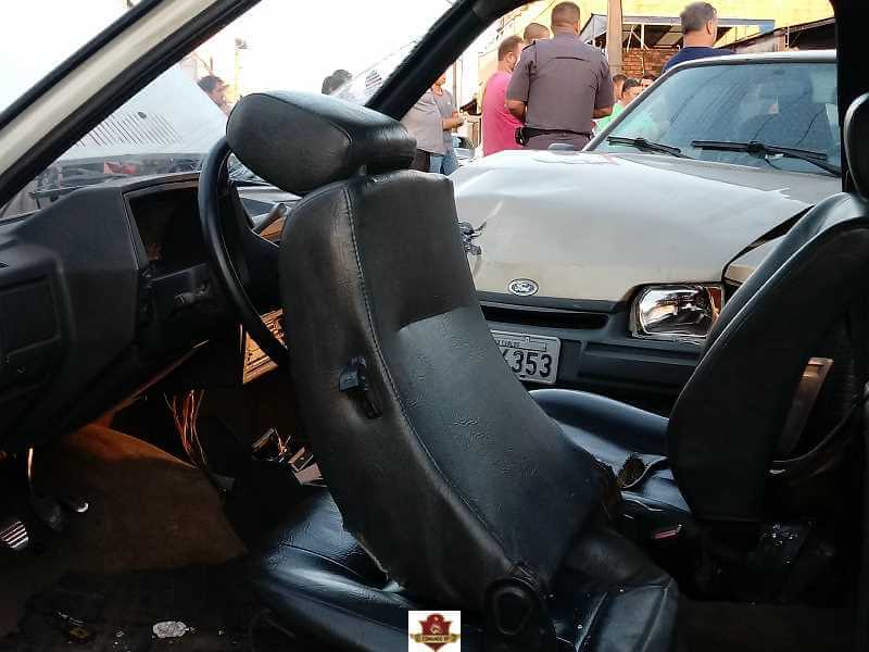 Segundo informações, o senhor Antonio Durvalino, de 67 anos, conduzia seu Gol pela rua Rocha Pombo quando no referido cruzamento foi atingido por um Forde Escort , o qual era conduzido pelo senhor Valdecir. D.Bastitela, de 53 anos. Com a colisão, Claudia. F. da Silva Delgado, de 31 anos, passageira do Gol ficou retida nas ferragens e foi retirada pelo SAMU e Corpo de Bombeiros e encaminhada à Santa Casa, com suspeita de fratura na costela.