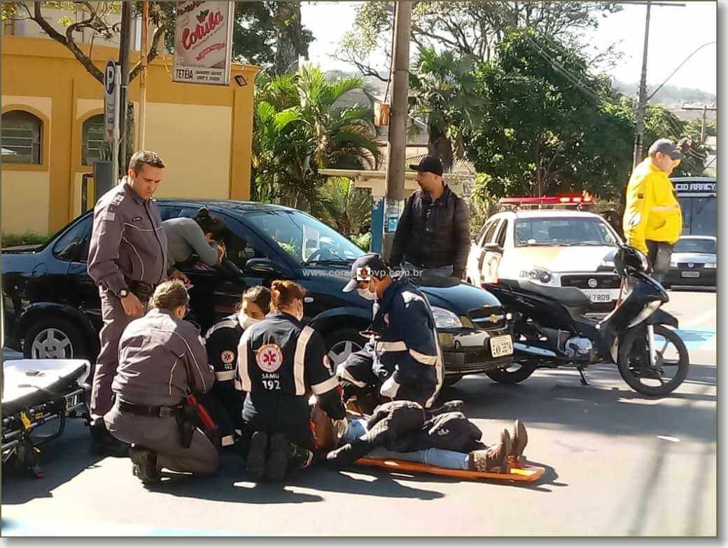 Segundo informações, Bárbara, 21 anos, transitava com sua moto Honda Biz pela a preferencial quando foi atingida por um carro que teria avançado o pare. O GM Claassic era conduzido por uma mulher. Com a colisão a motociclista foi ao solo e sofreu ferimentos leves. A mesma foi socorrida pelo SAMU e encaminhada à Santa Casa.