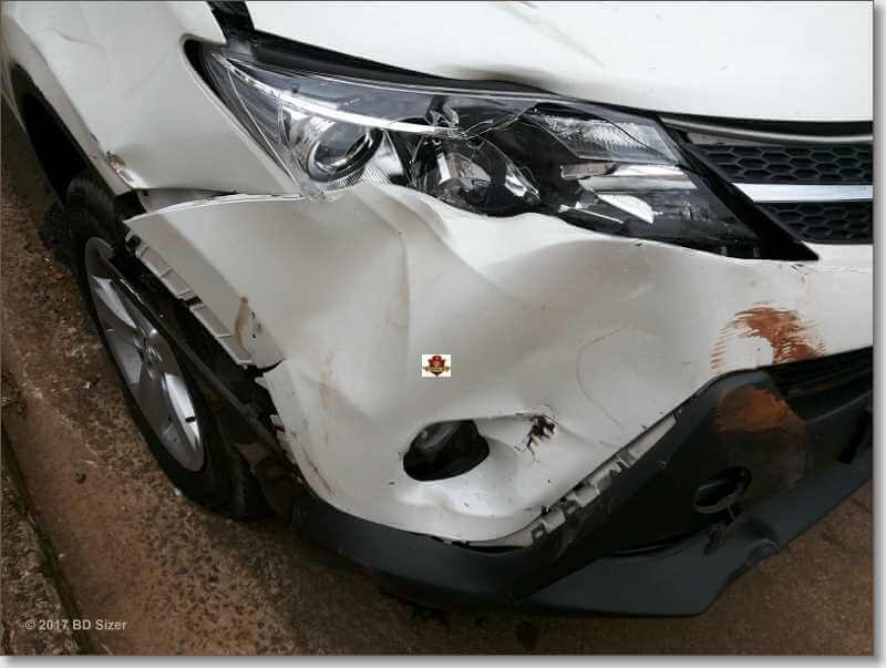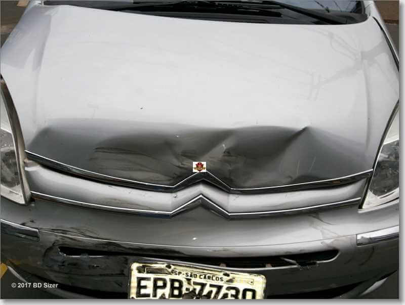 Segundo testemunhas, Lindon de Jesus, de 27 anos, transitava pela rua Giacomo Casalle, com uma moto da referida empresa e pela rua Ângelo Passeri transitava uma mulher com sua Toyota Rana da cor branca. Segundo testemunhas, a empresária condutora da Toyota Rana teria avançado o sinal vermelho e colidido na moto e também em um Picasso da cor prata. O SAMU foi acionado e socorreu o vigilante, o qual se queixava de fortes dores na perna. Local com uma possível fratura. Ele foi encaminhado à Santa Casa de São Carlos. A empresária nada sofreu, porém encontrava-se em estado de choque. A PM esteve presente e tomou todas as medidas cabíveis.