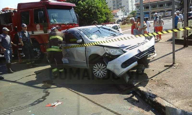 Um veículo da cor prata transitava pela Avenida Francisco Pereira Lopes, no cruzamento , no cruzamento da rua Dr. Serafim Vieira de Almeida, foi atingido por um Hyundai Santa Fe da cor preta, conduzido por uma mulher.