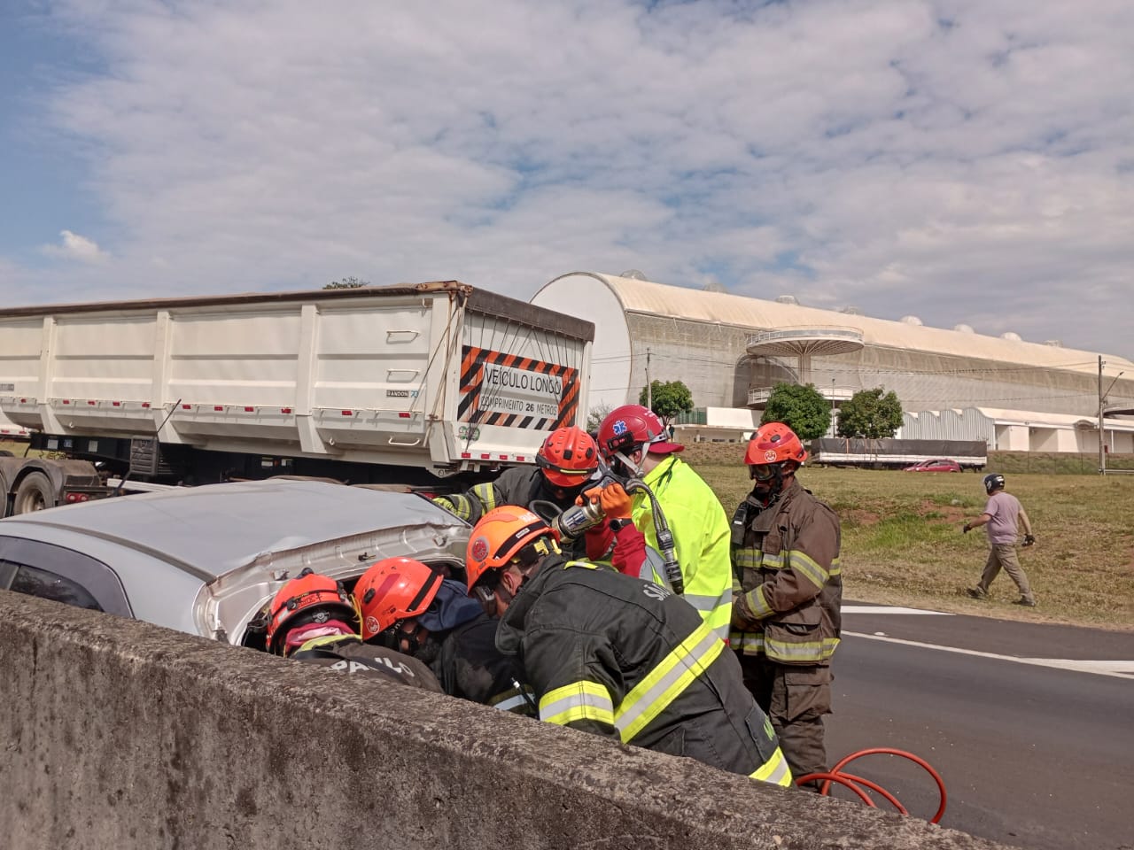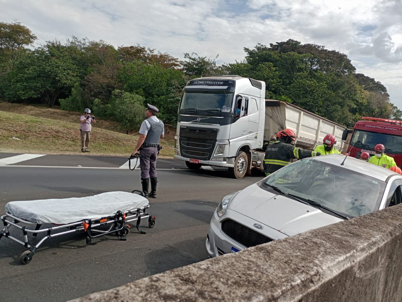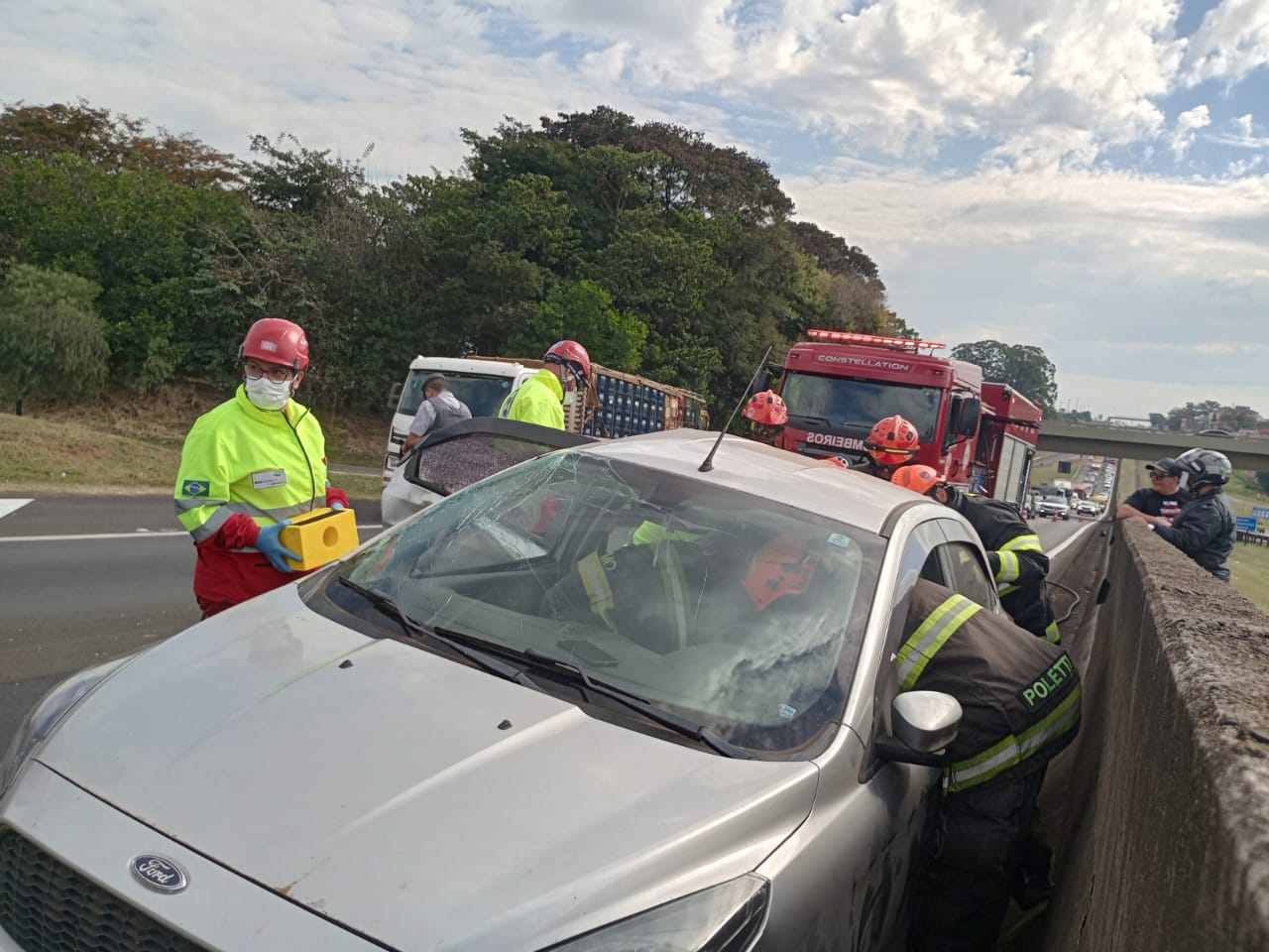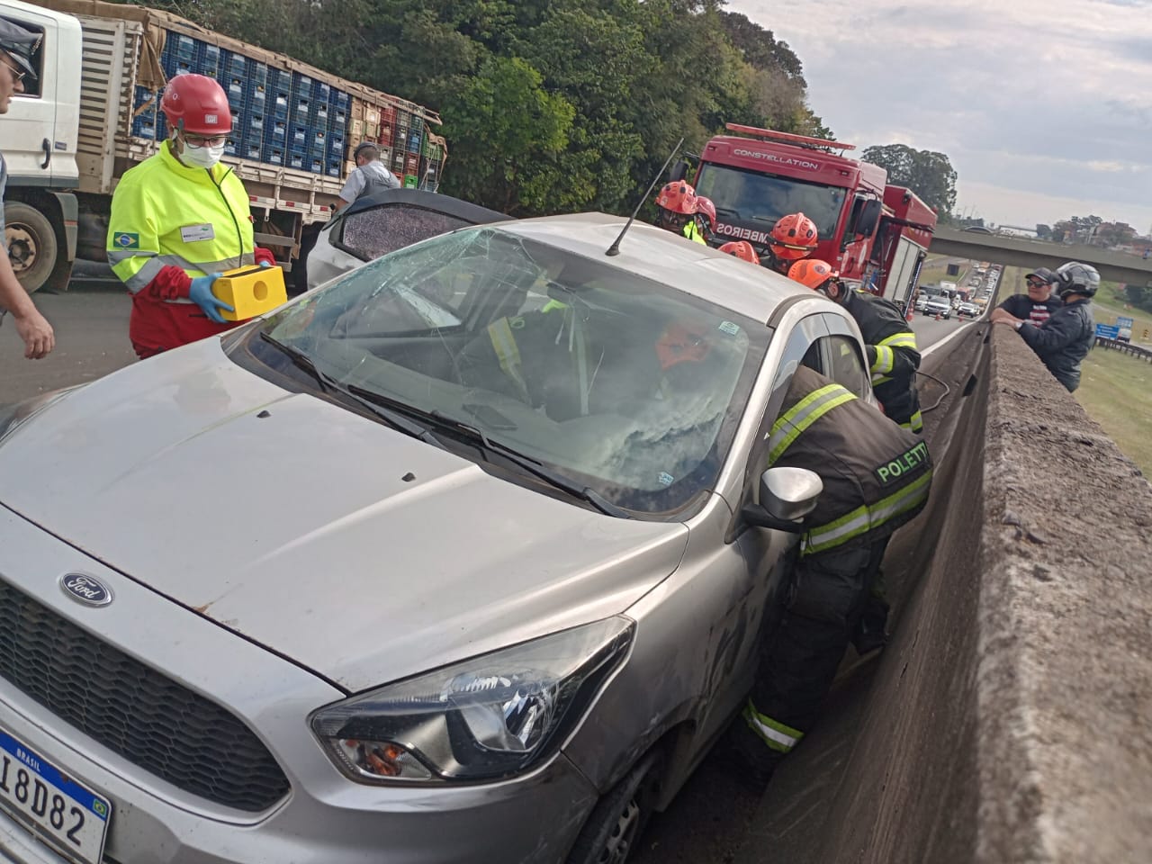 Um acidente de trânsito ocorrido entre um veículo Ford Ka e um caminhão, ocorrido nesta tarde de segunda-feira, 17 de julho de 2023, na Rodovia Washington Luís, defronte ao Hospital Universitário de São Carlos-SP, deixou uma pessoa presa nas ferragens.