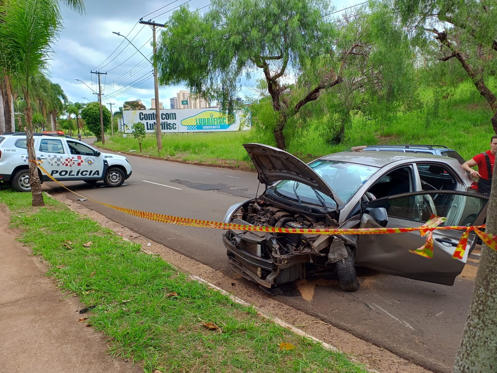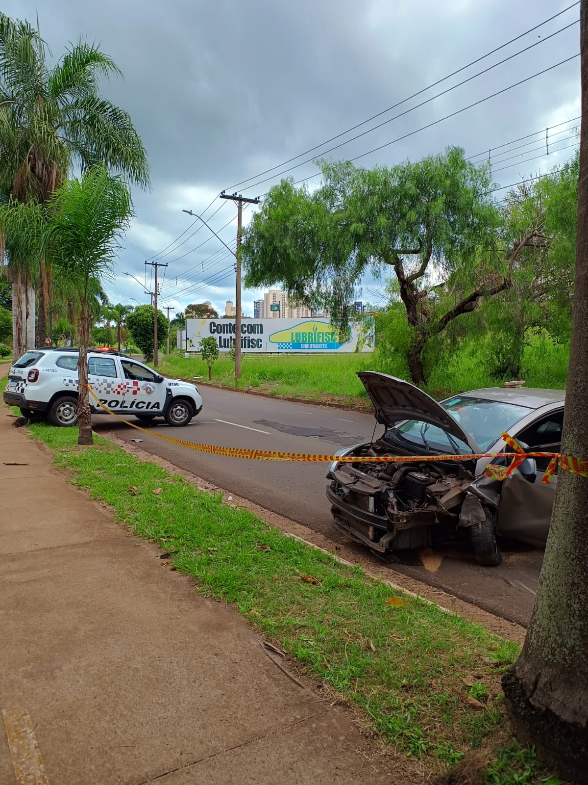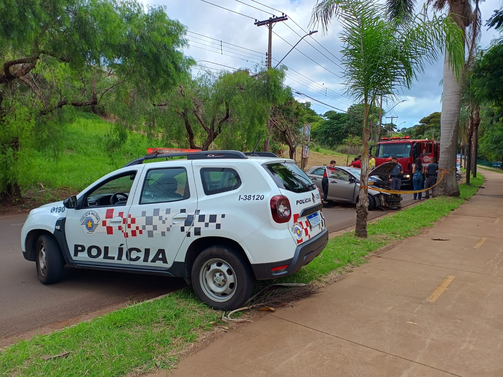 Uma mulher de 26 anos ficou ferida nesta tarde de quinta-feira, 25/05/2024, ao colidir seu HB20 em um coqueiro na Av. Comendador Alfredo Maffei, região do SESC, São Carlos-SP.