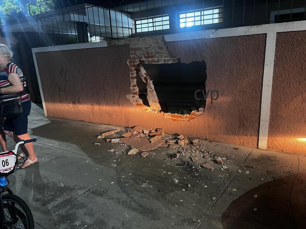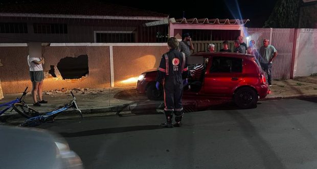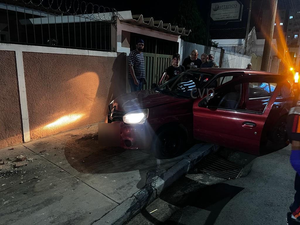 De acordo com informações, um homem de 44 anos transitava com seu Renault da cor vermelha, um dos pneus teria estourado, o carro subiu na calçada e colidiu no muro de uma casa. A esposa do condutor do veículo ficou ferida e foi socorrida pelo SAMU. A PM esteve no local e tomou as medidas cabíveis.