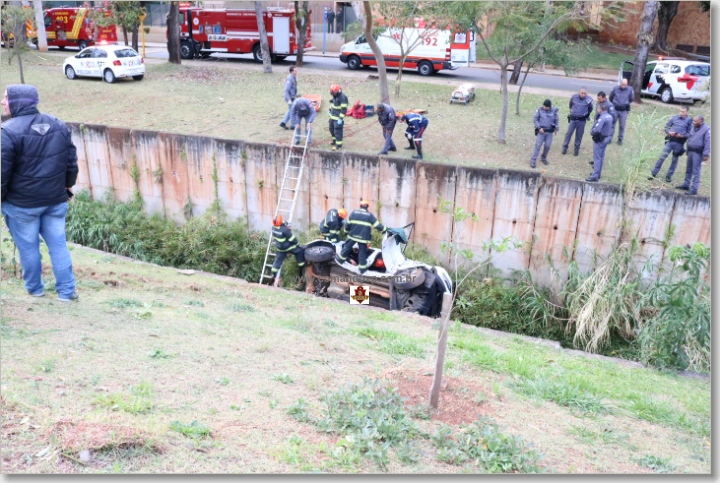 Segundo informações, por volta das 6:30 um senhor fazia caminhada pelo local, quando se deparou com pedaços  de veículo e um coqueiro com marcas de batida. Ele olhou  dentro do córrego e  viu o carro. Como estava sem celular, o homem parou uma moto e o motociclista acionou o resgate. O Corpo de Bombeiros e SAMU encontraram a mulher morta e o seu marido ferido.  Moradores de um prédio defronte ao local relataram que escutaram um forte barulho por volta das 2:30, mas não viram nada. O Kia Sportage da cor branca transitava no sentido Centro/Shopping Iguatemi.  As causas do acidente ainda são desconhecidas.   Rodrigo  foi socorrido para a Santa Casa e permanece internado e seu estado de saúde é estável. A Polícia Militar e Científica estiveram no local e o corpo da vítima foi encaminhado para o IML.