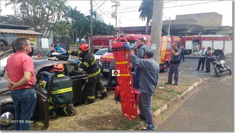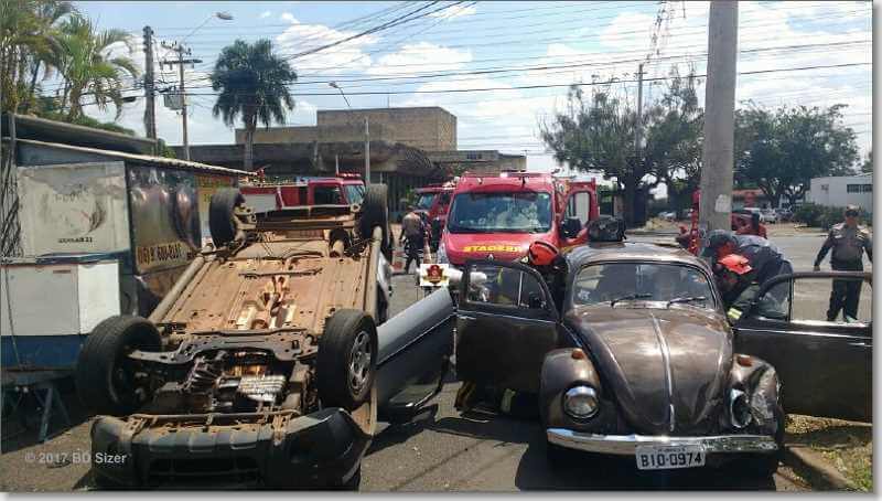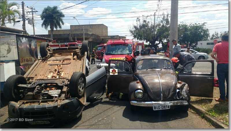 A condutora do Fusca não conseguiu desviar e atingiu a lateral da Eco Sport que capotou. A jovem que conduzia a Eco Sport trabalha em um comércio na região da Bento de Abreu e ficou presa pelo cinto de segurança e de ponta cabeça no veículo. Ela foi auxiliada por um homem que passava pelo local.