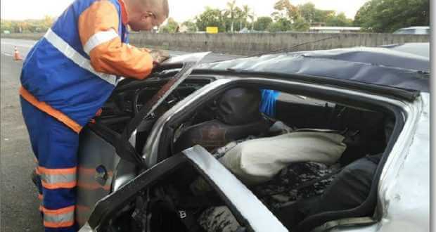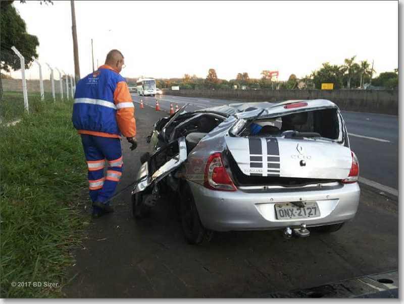 O veículo placas de Goiânia ficou completamente destruído e foi retirado do local e encaminhado ao Pátio da Polícia Rodoviária.