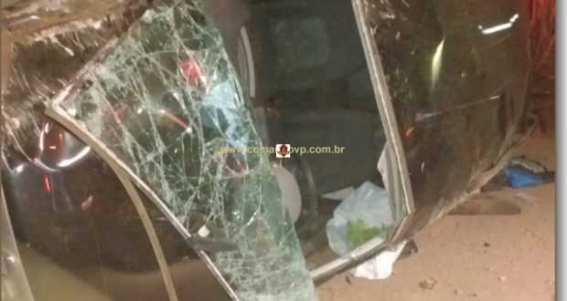 Um homem ficou levemente ferido ao capotar seu carro no inicio da noite desta quinta-feira, 20 de junho de 2019, na estrada da Usina da Serra, Ibaté-SP.
