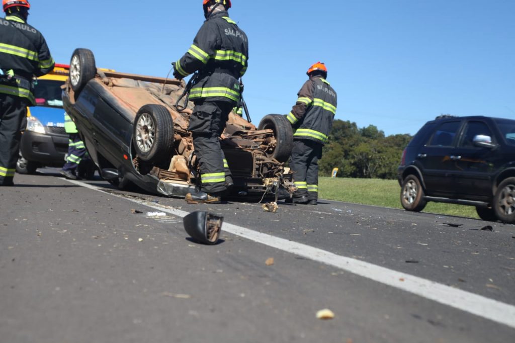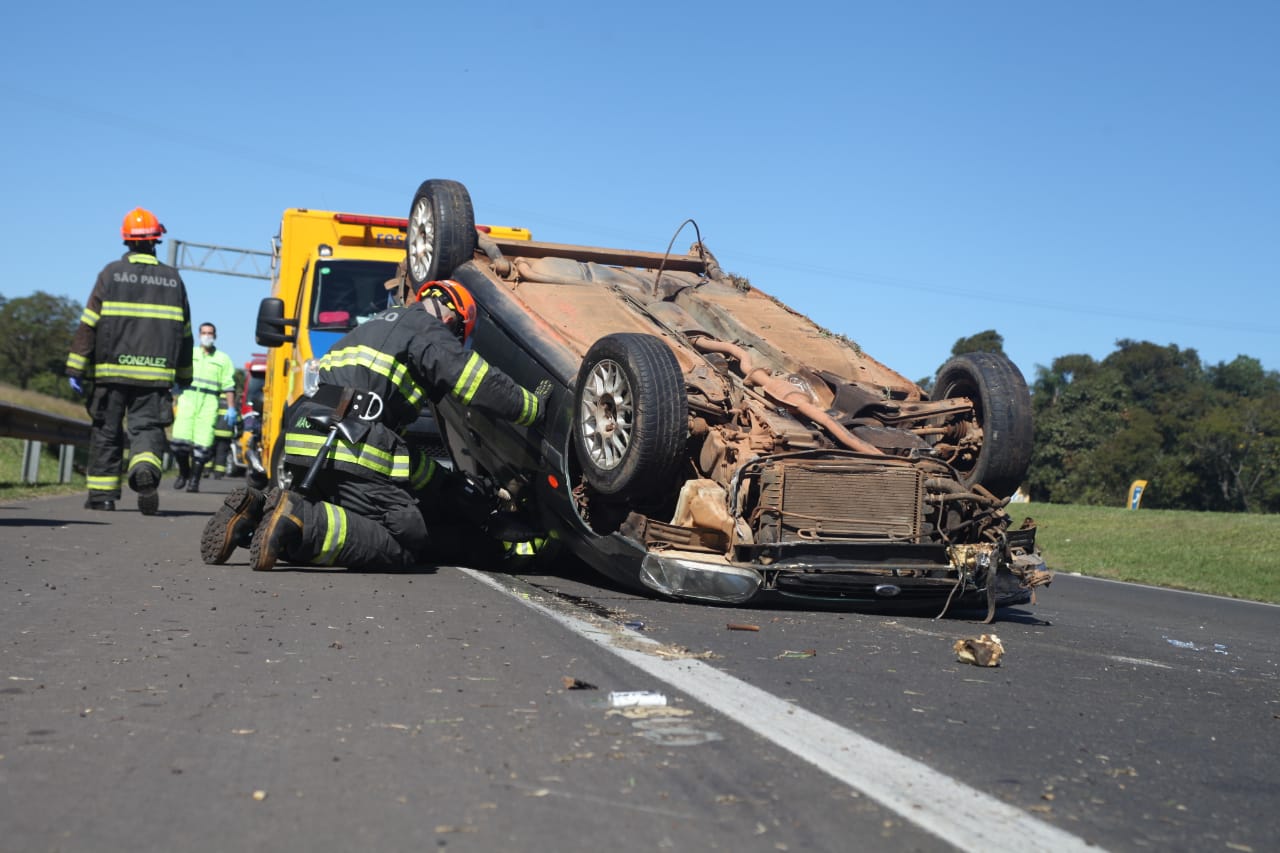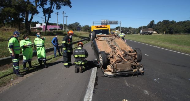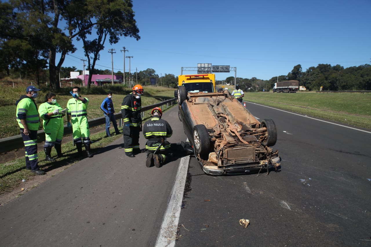 Um homem de 46 anos ficou ferido em um capotamento ocorrido no início da tarde desta quinta-feira, 28 de maio de 2020, no km 225 da Rodovia Washington Luís, São Carlos-SP.