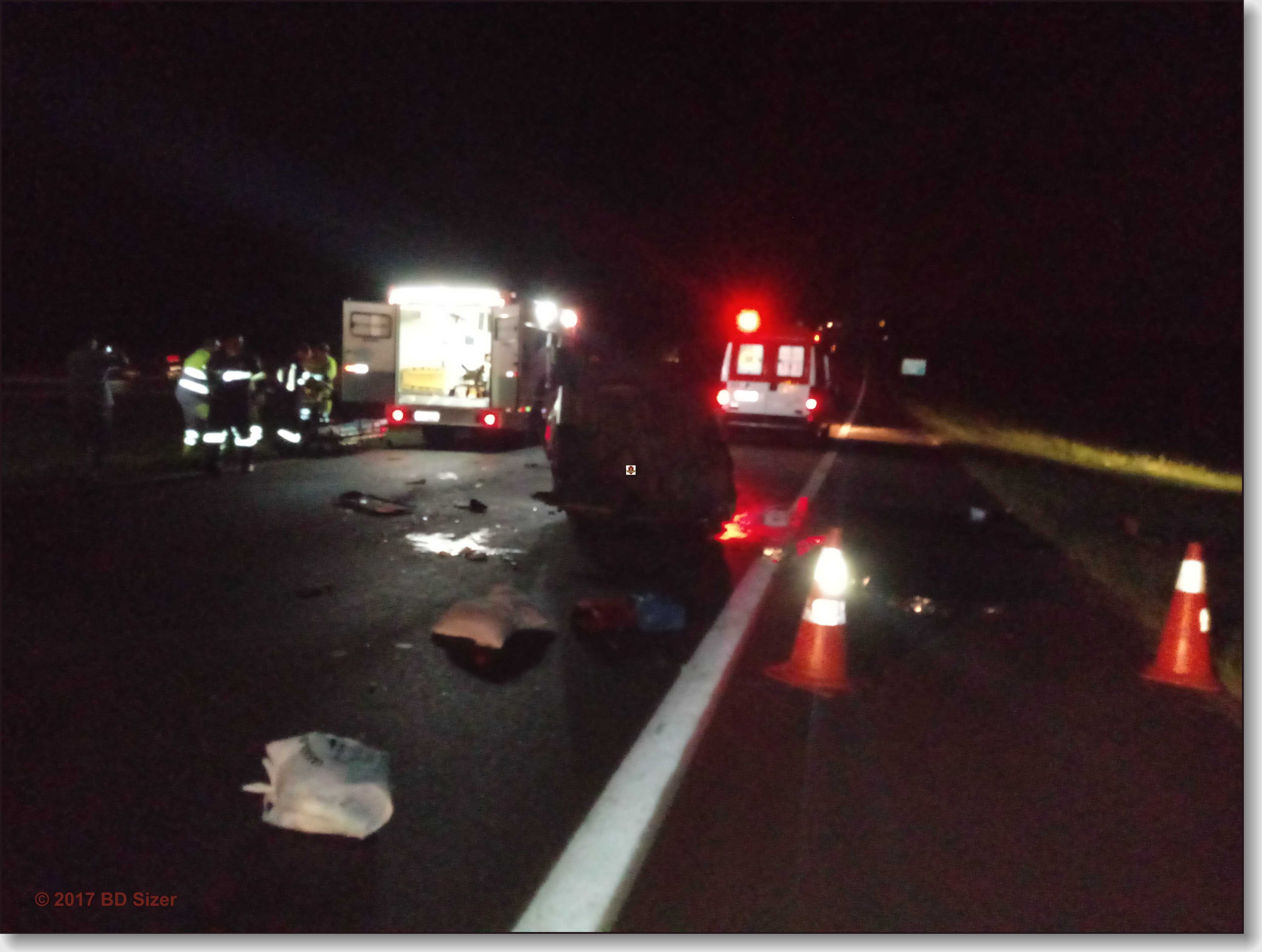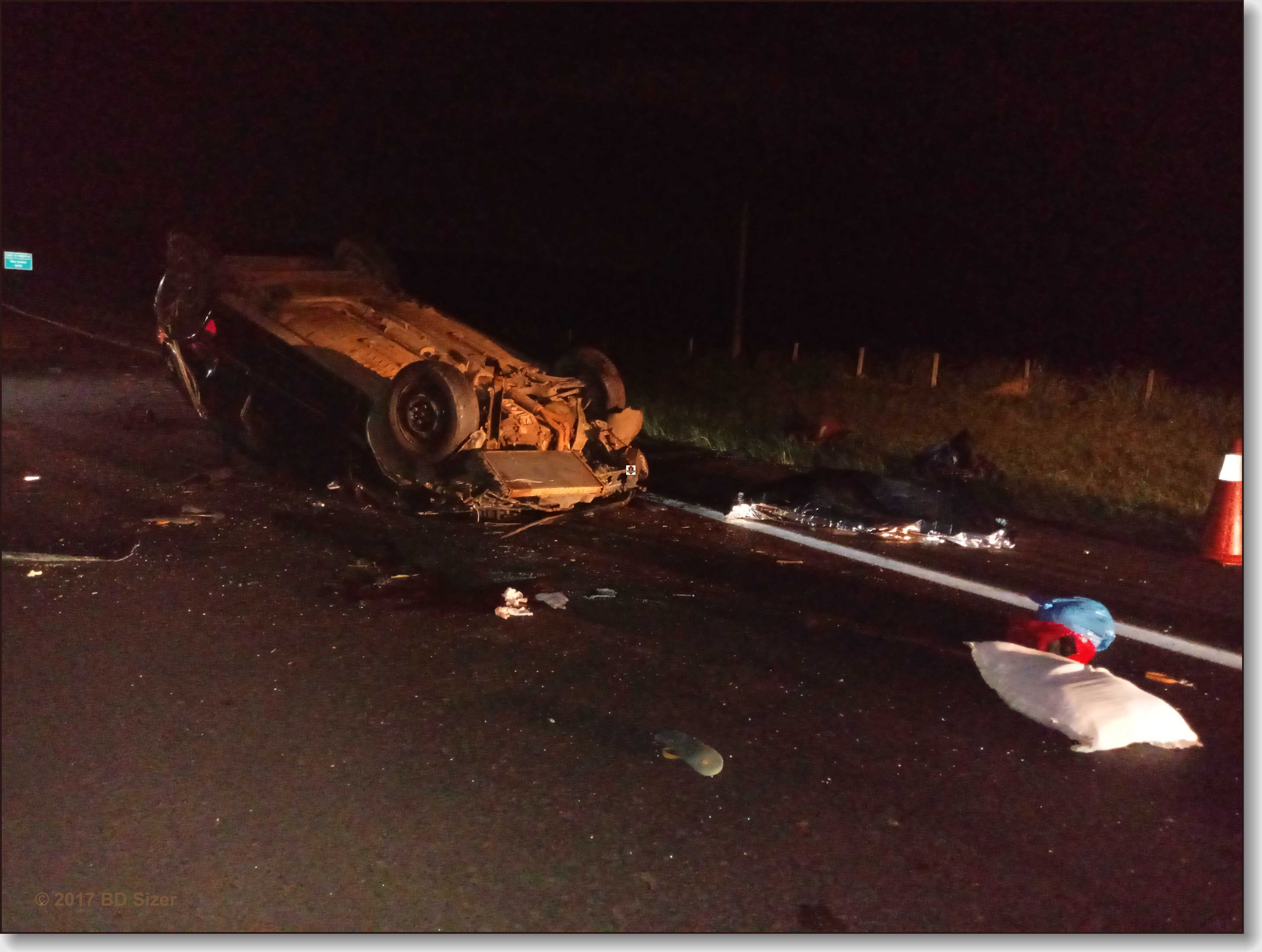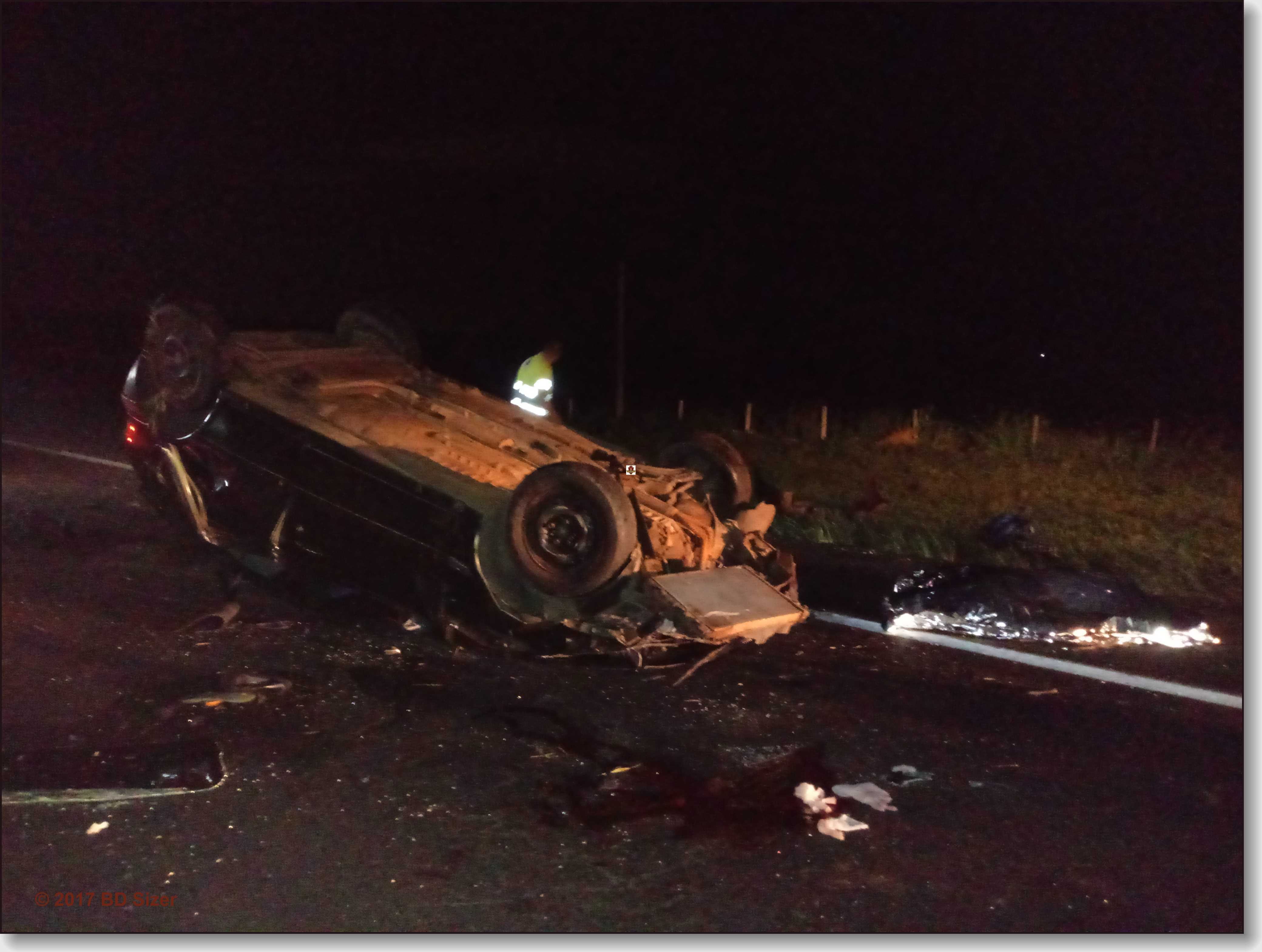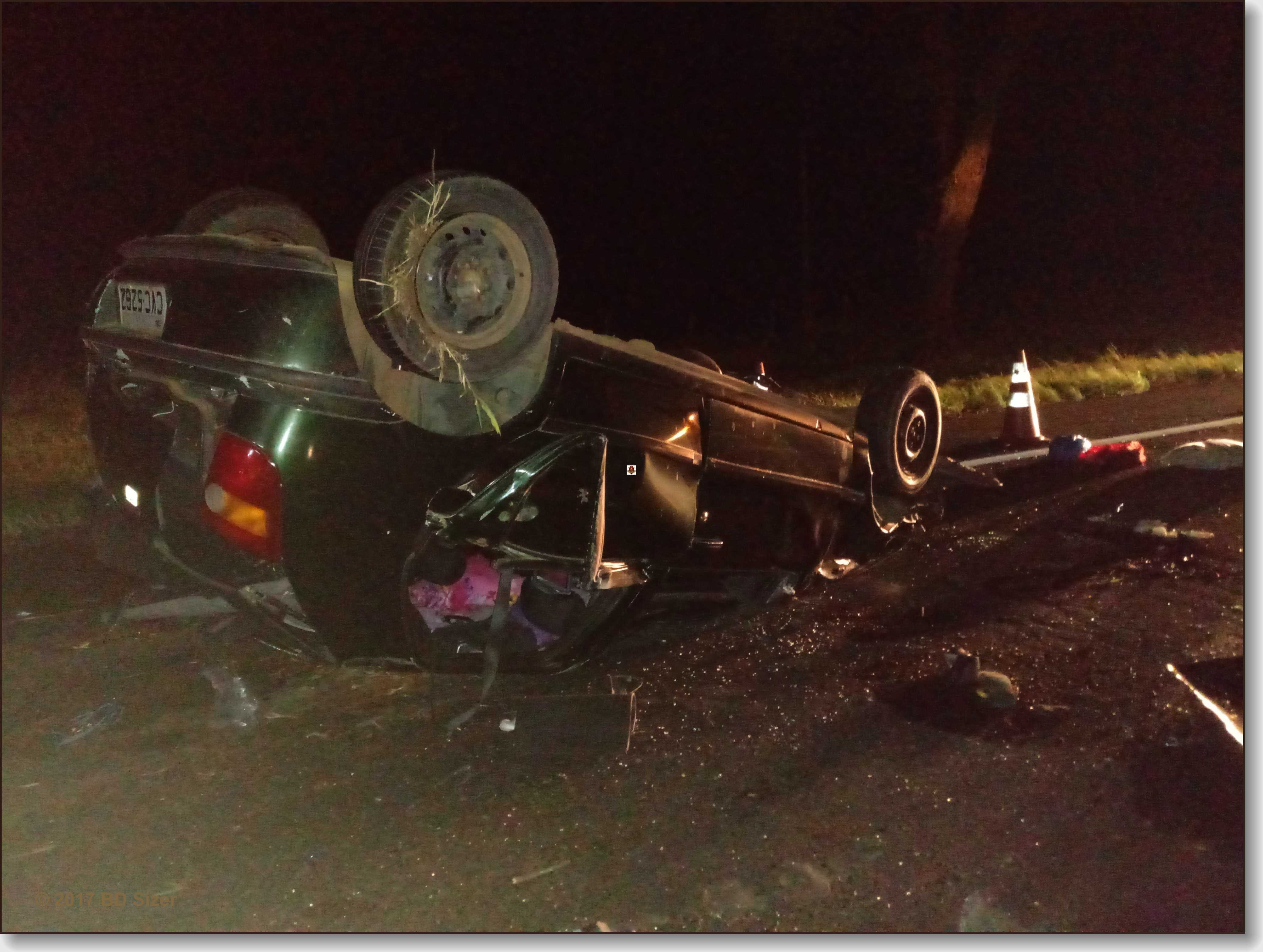 Duas pessoas morreram em um capotamento ocorrido nesta noite de domingo, 17-12-2017, no km 243 da rodovia Washington Luís, entre São Carlos/Ibaté-SP.