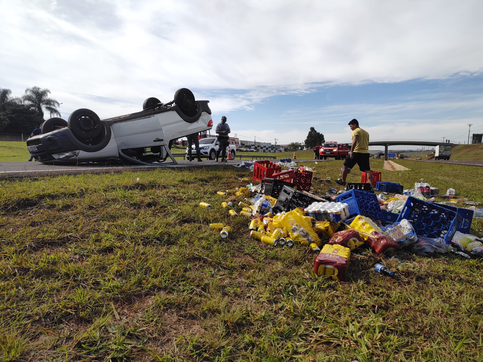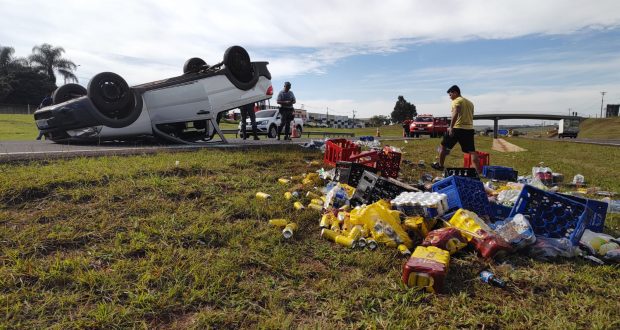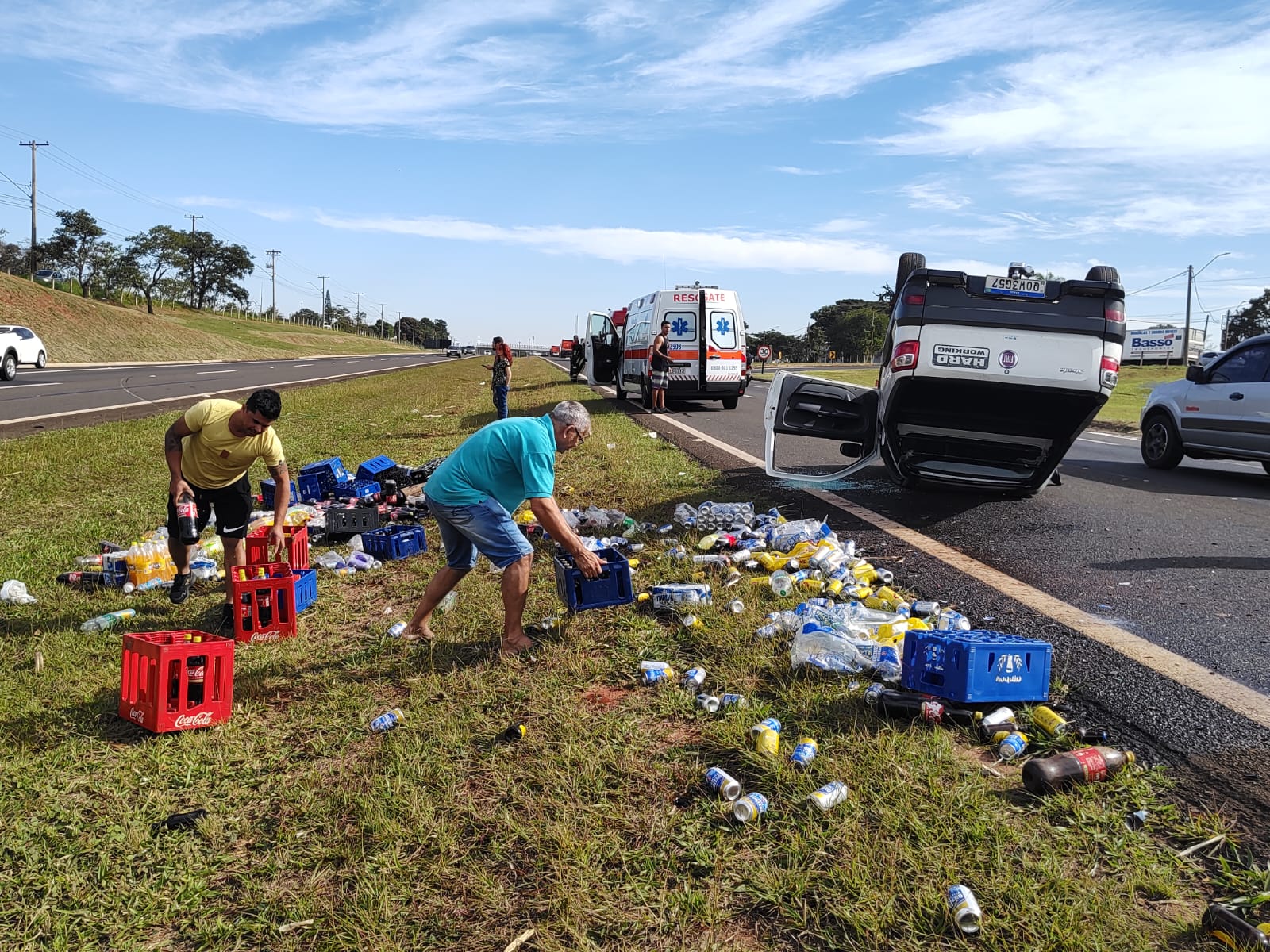 Segundo informações, o condutor de um veículo Fiat Strada, pertencente uma distribuidora de bebidas, iria fazer uma entrega em Américo Brasiliense, quando perdeu o controle da direção e capotou. O condutor de 26 anos ficou preso nas ferragens e foi retirado pelas viaturas da concessionária e Corpo de Bombeiros. A carga ficou espalhada na pista. A vítima foi socorrida e encaminhada para um hospital de Araraquara.