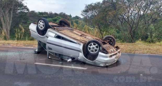 Um condutor de 32 anos perdeu o controle do carro, um Logus com placas de São José dos Campos, na rotatória da via de acesso Heitor de Souza Pinheiro. Ele estava sentido a rodovia Washington Luís quando perdeu o controle, bateu em um poste, capotando o veículo.