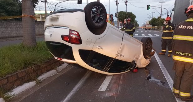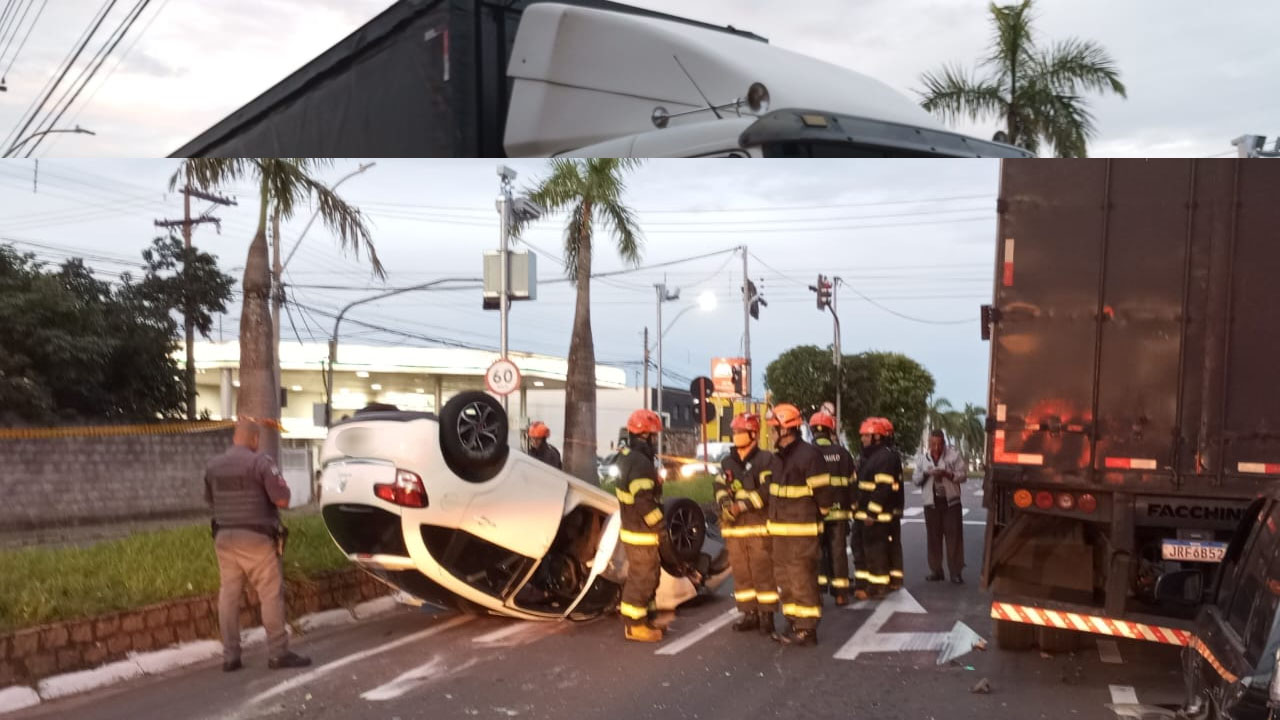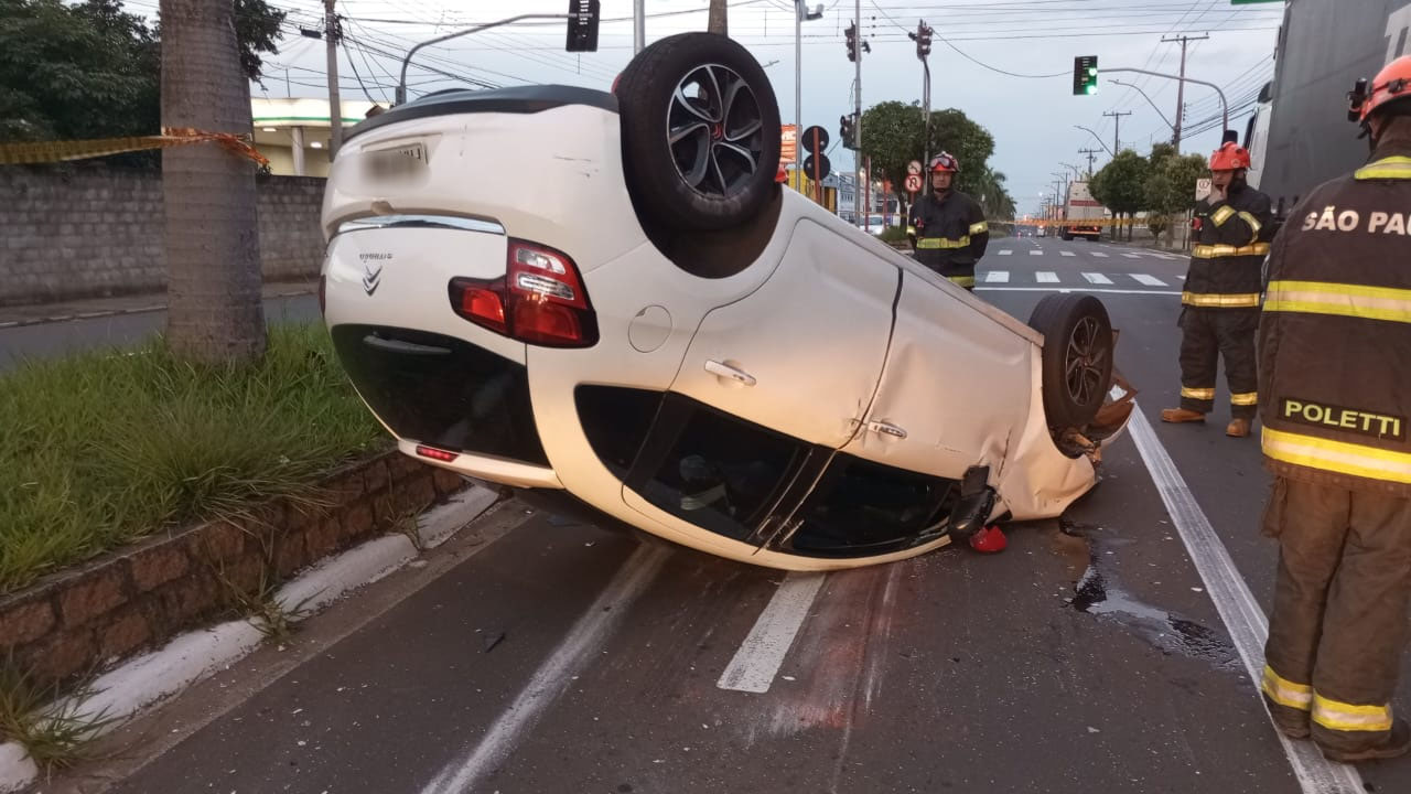 De acordo com informações, um veículo Meriva da cor preta, transitava no sentido rodovia Washington Luís/Praça Itália, quando teria ao frear, foi atingido por um veículo Cietroen C3 da cor branca. O C3 capotou e parou no meio da via. O Meriva acabou colidindo em um caminhão que estava devidamente estacionado. O Corpo de Bombeiros e a Polícia Militar foram acionados, mas um senhor de 61 anos, condutor do carro capotado, não estava ferido. A PM tomou todas as medidas cabíveis.