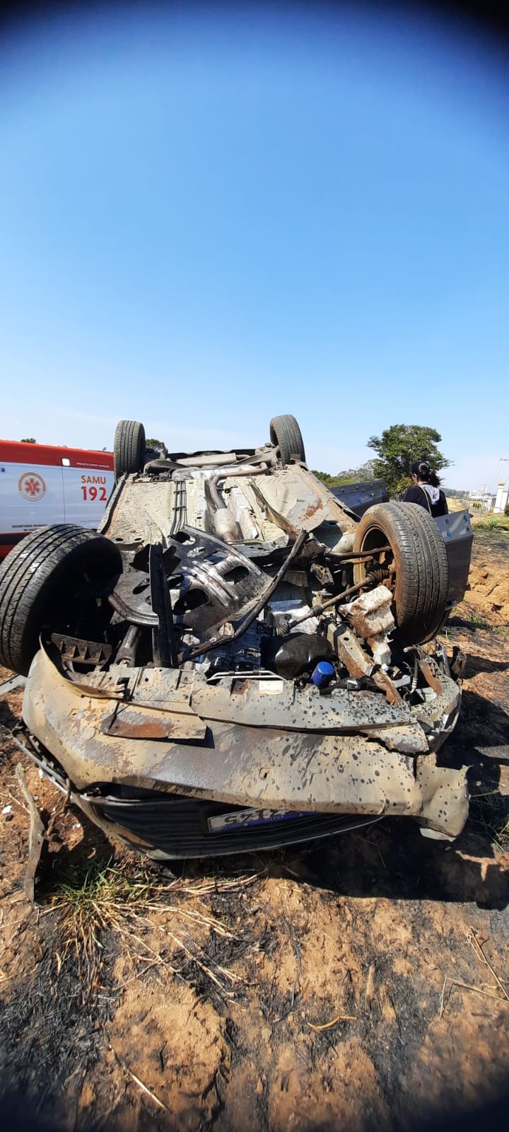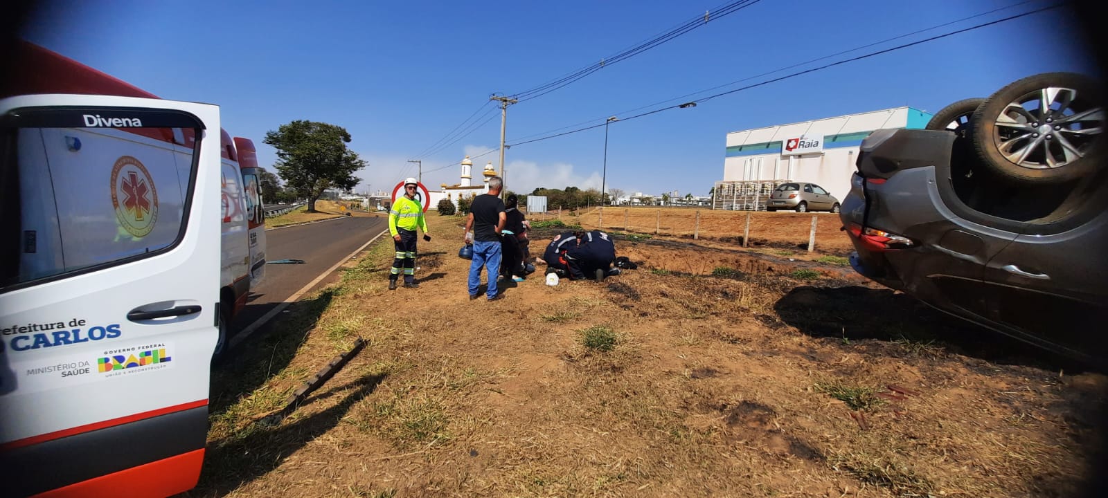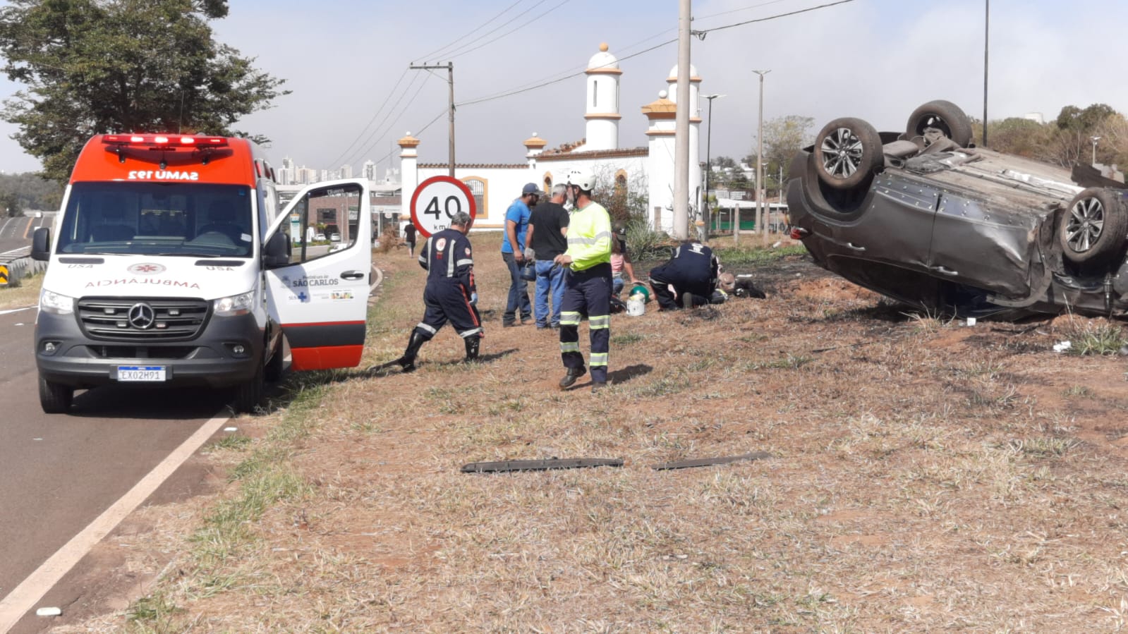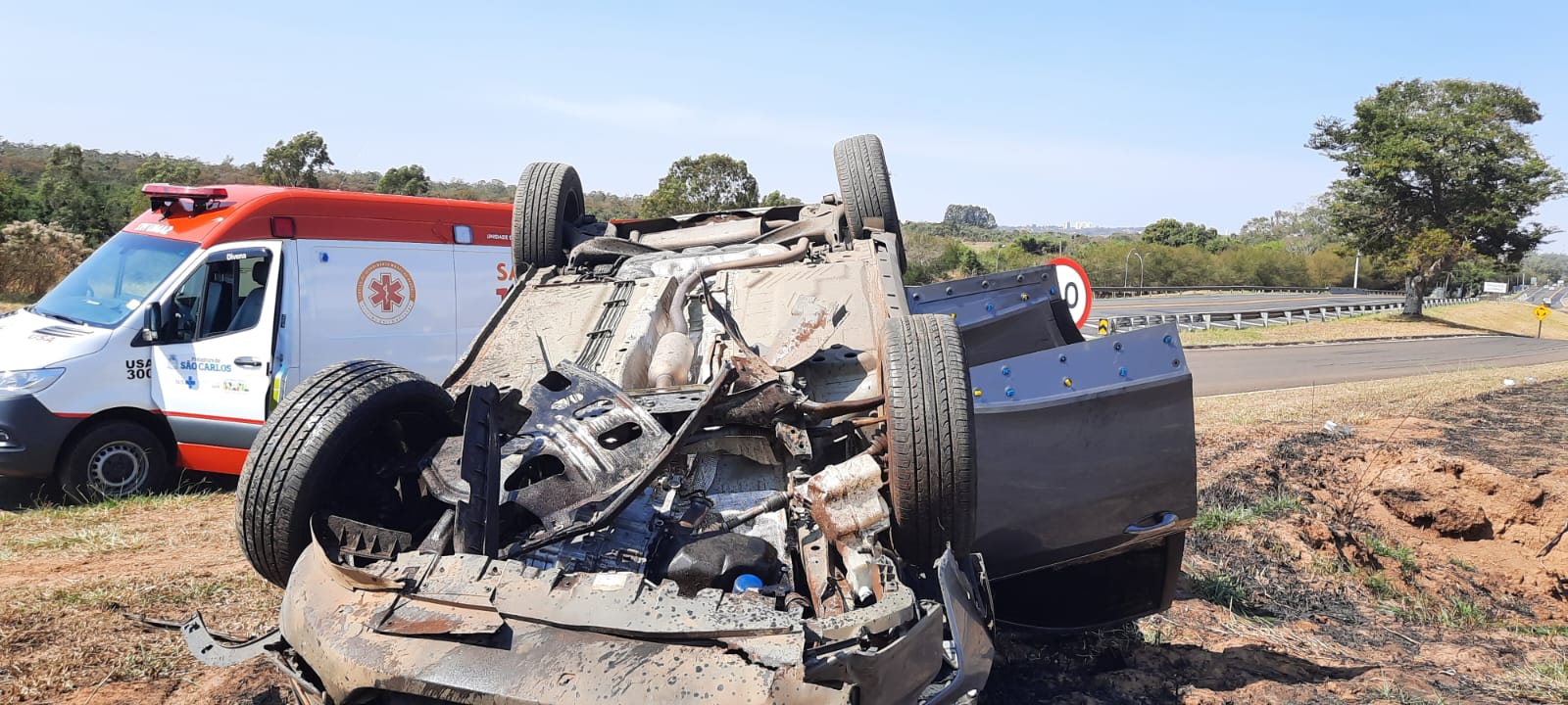 Nesta manhã de quinta-feira, 8 de agosto de 2024, um veículo Tracker capotou no km 232 da rodovia Engenheiro Tales Lorena Peixoto Jr., região do Damha, São Carlos-SP.