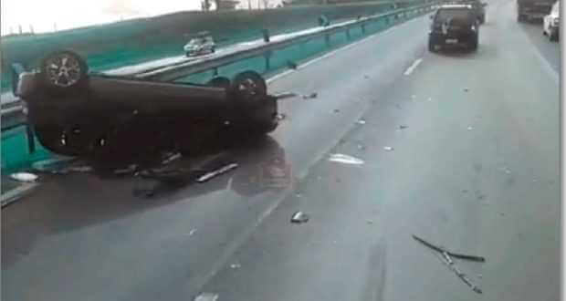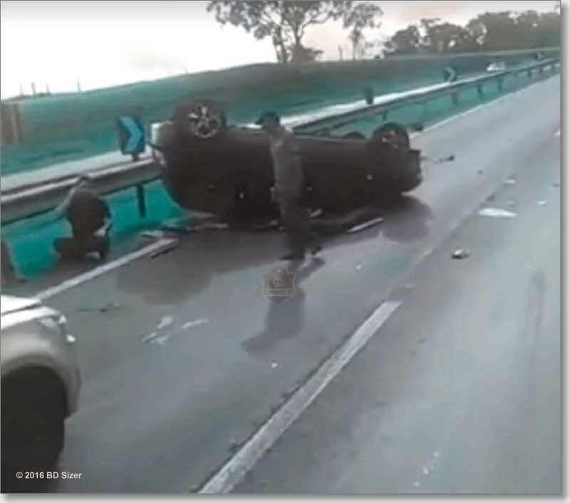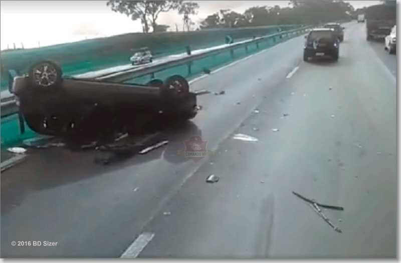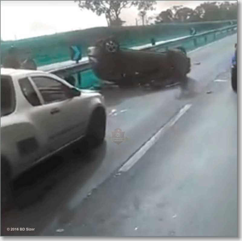Um carro capotou nesta tarde de quarta-feira, 16-11-2016 na rodovia Washington Luiz, na subida do Chibarro, Araraquara-SP.