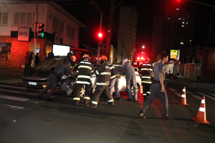 De acordo com testemunhas, o veículo Vectra, conduzido por um rapaz estava pela Rua XV de Novembro, quando teria sido atingido por um Gol, o qual estaria pela Rua São Joaquim. Com a colisão, o veículo Gol capotou e foi parar na calçada. O Corpo de Bombeiros e SAMU foram acionados e socorreram o condutor do Vectra e os ocupantes do Gol, sendo um masculino e duas femininas, para a Santa Casa. Todos aparentemente com ferimentos leves. A PM esteve no local e tomou as medidas cabíveis.