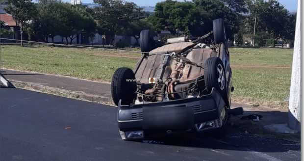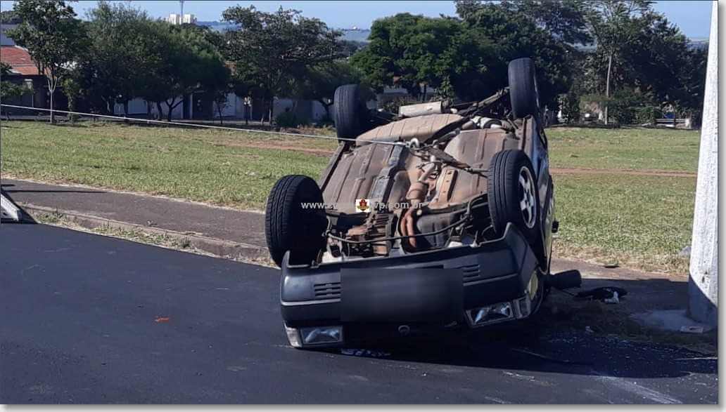 Um veículo capotou nesta manhã de segunda-feira, 9 de março de 2020, na região do Campus Dois da USP, bairro Santa Felícia , São Carlos-SP. O acidente ocorreu no cruzamento das Ruas Francisco Possa, com a Rua João Dagnone.