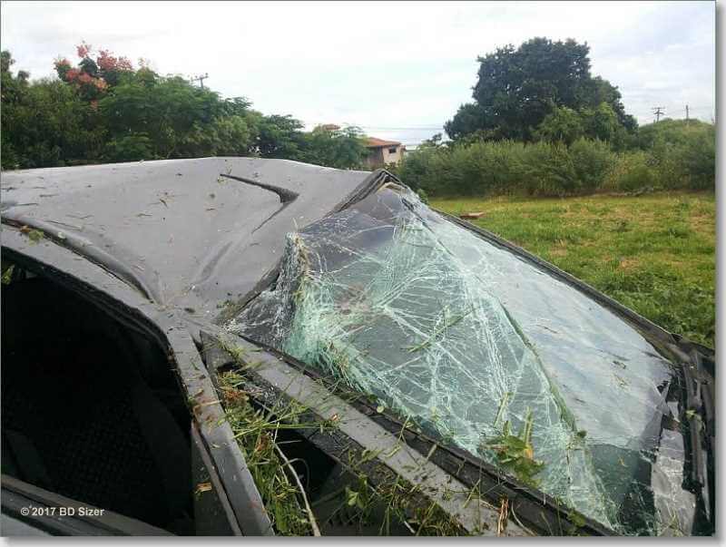 Segundo informações, o jovem perdeu o controle da direção do veículo Meriva e capotou por várias vezes, parando em um terreno baldio.