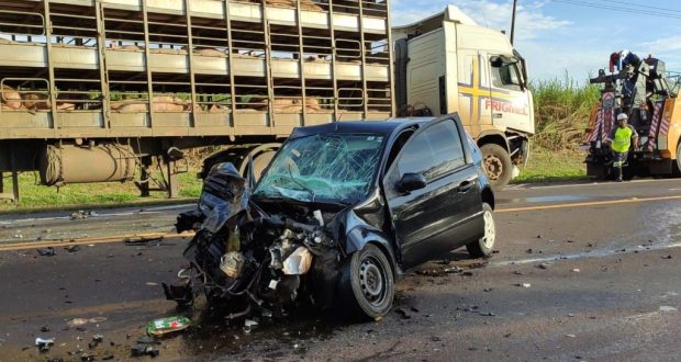 Segundo informações, um Ford/Fiesta de cor preta conduzido por uma mulher seguia sentido Araraquara/Boa Esperança quando colidiu lateralmente contra um caminhão carregado de porcos, que trafegava pelo sentido contrário da pista.